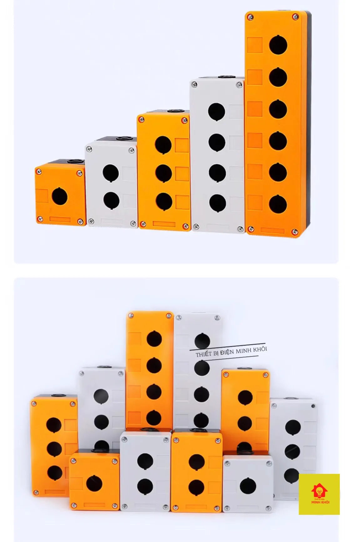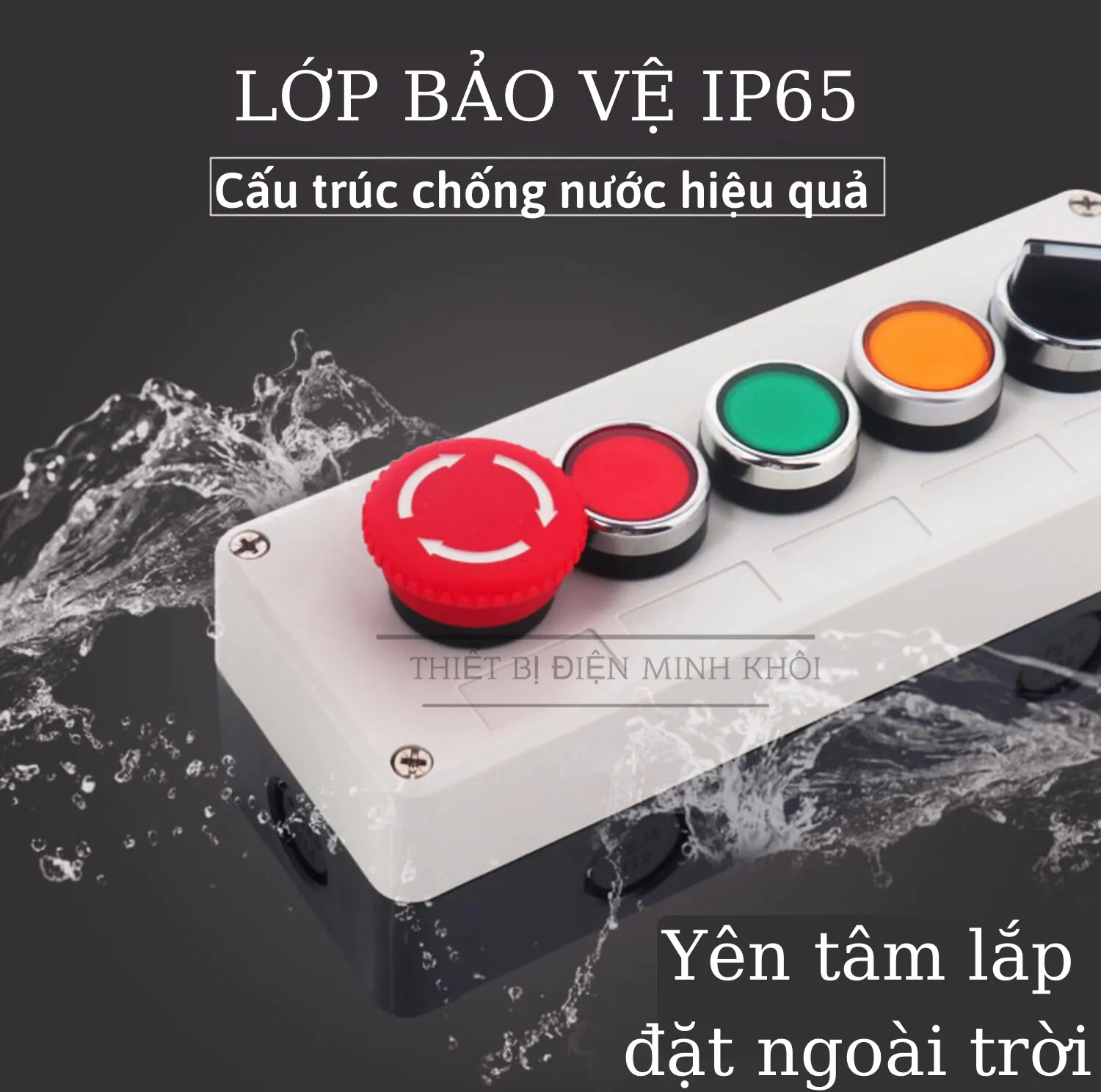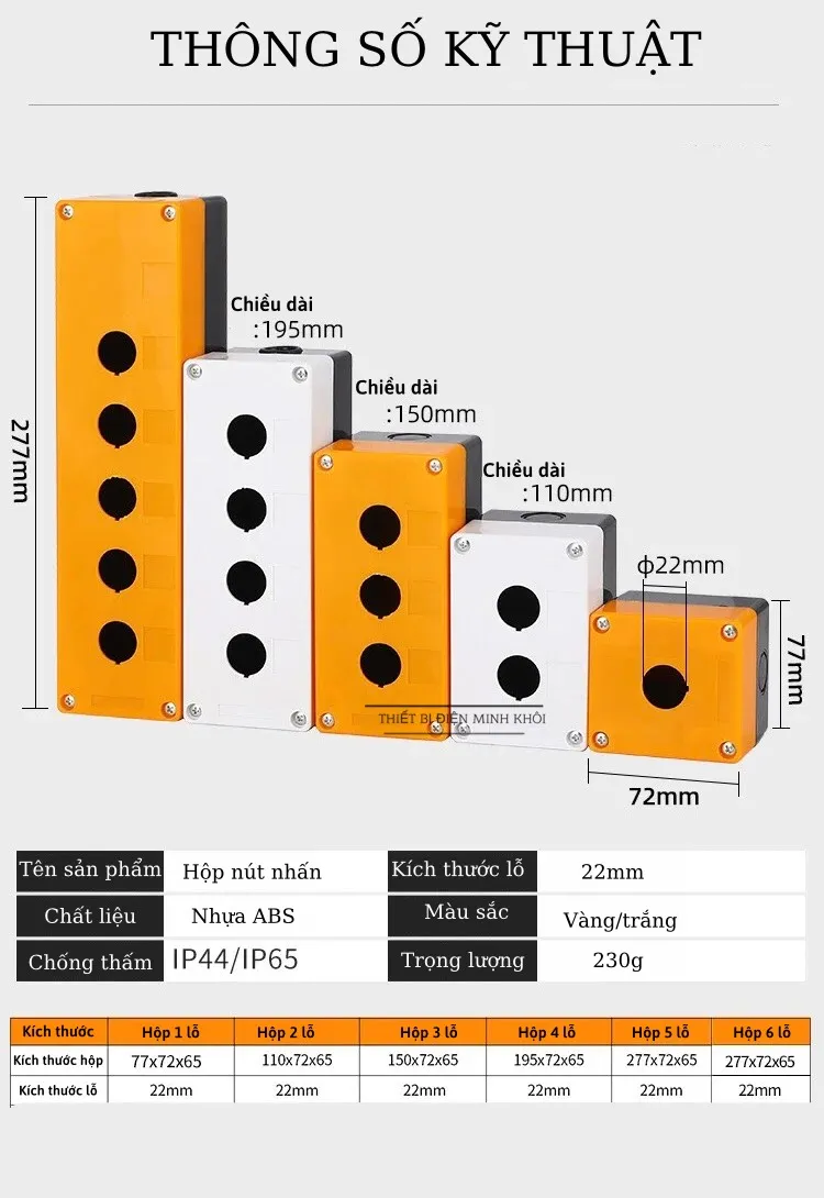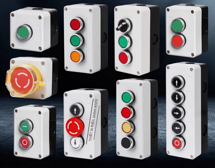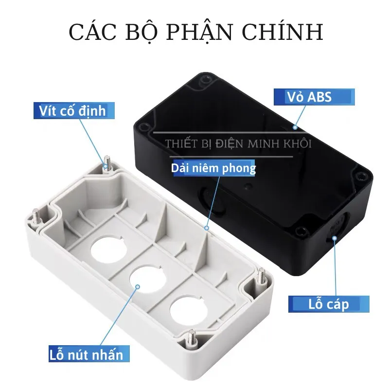Hộp Nút Nhấn Lỗ Nhựa Phi 22 Cao Cấp, hộp điều khiển nút ấn, công tắc