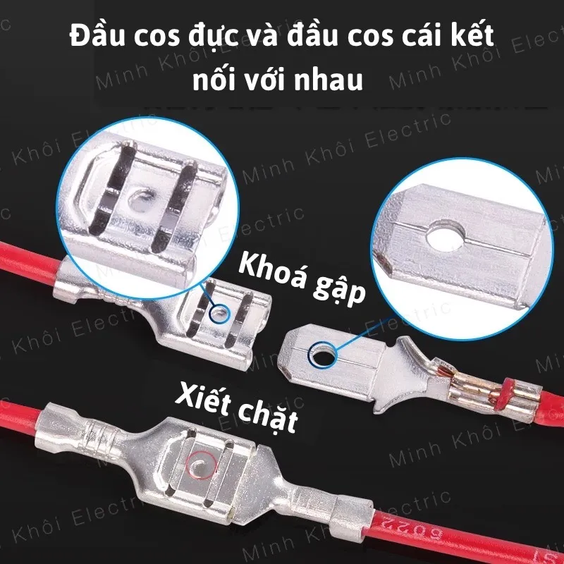 Bộ đầu nối đầu cuối cos đực và cos cái trần được sử dụng rộng rãi trong kết nối dây điện