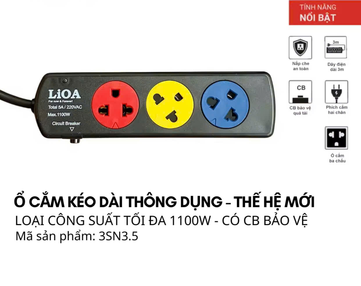 Ổ cắm điện Lioa đa năng,ổ điện Lioa có công tắc, ổ cắm điện đa năng,ổ điện Lioa dây dài,ổ cắm Lioa,ổ cắm kéo dài đa năng,ổ cắm chịu nhiệt,ổ điện dây dài,ổ Lioa, ổ điện Lioa,công tắc Lioa - Dài 5 mét - 3 Ổ Đa Năng - 3DND