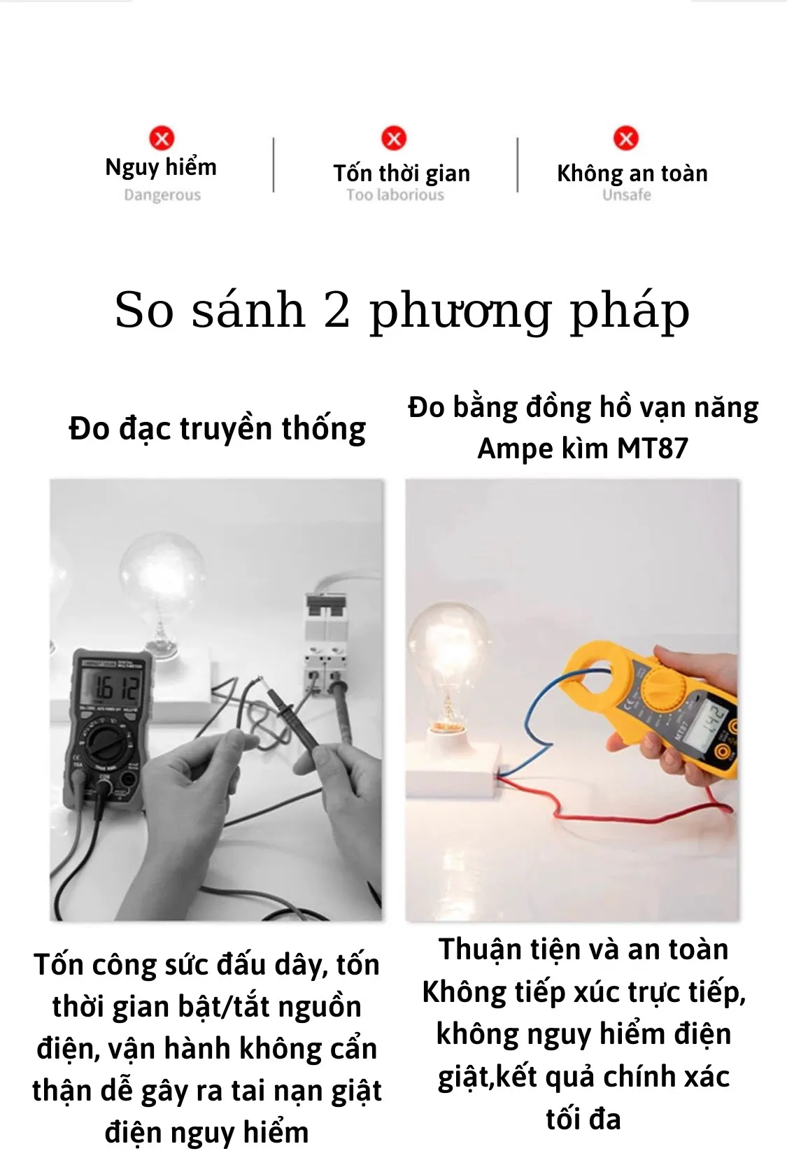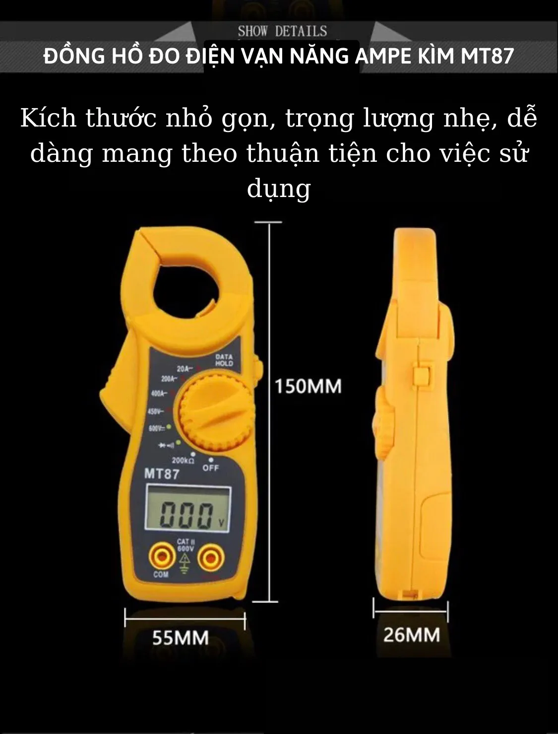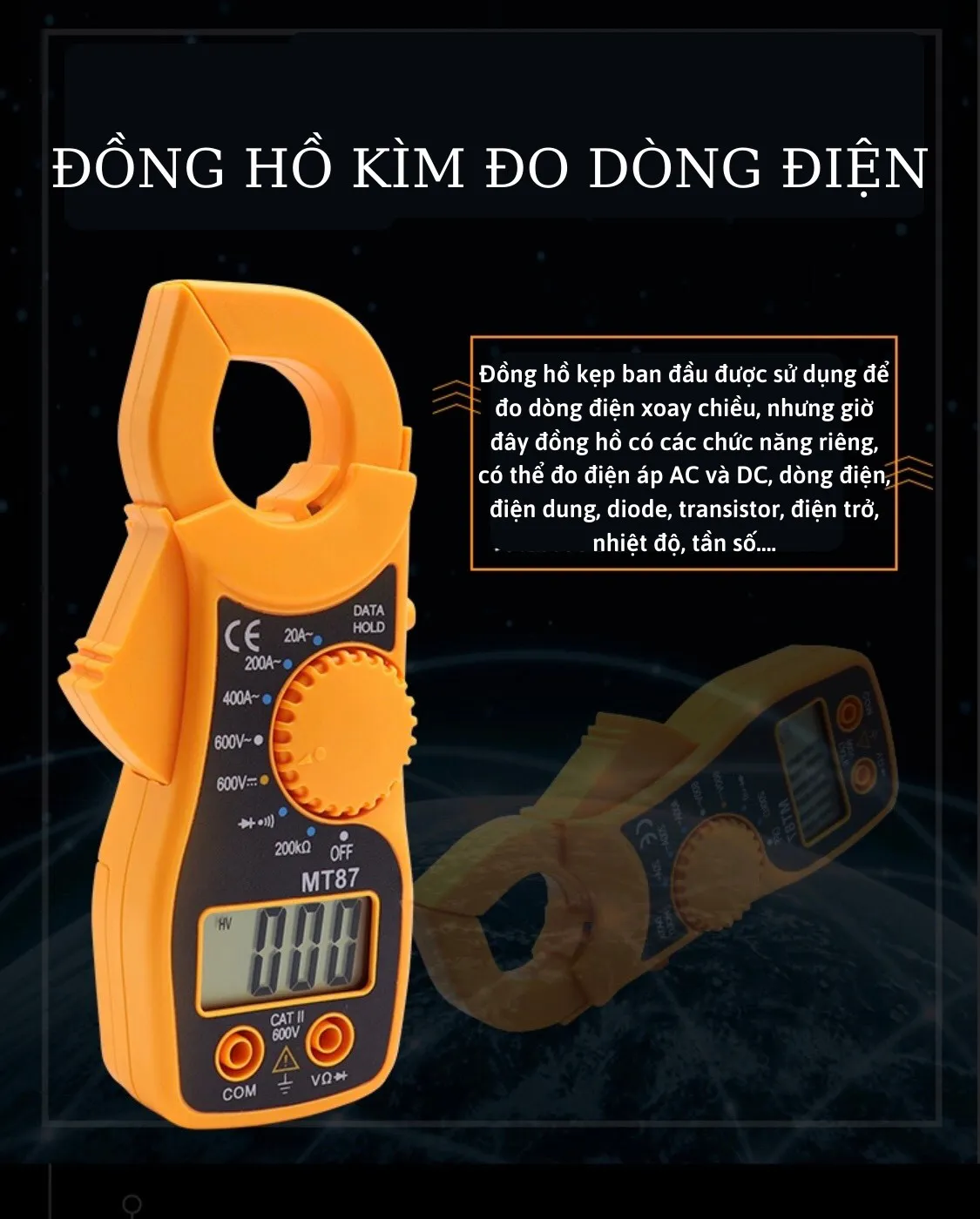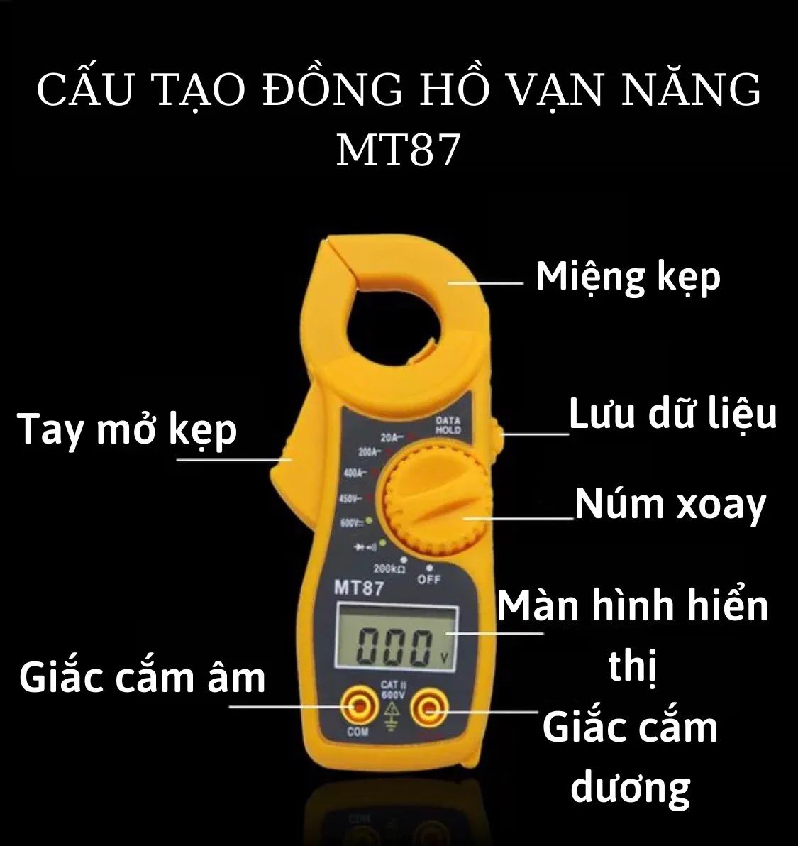 – Thang đo điện áp một chiều (DCV): 600VDC, sai số ±(0.8%+1)