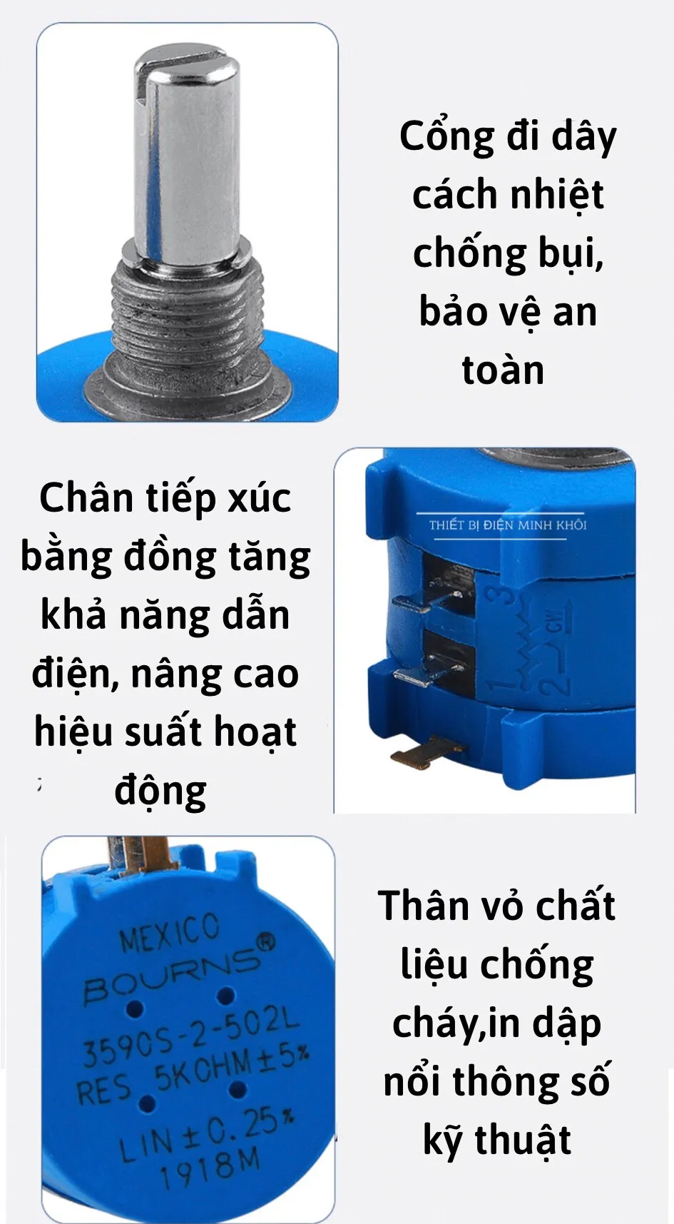 Biến Trở Chính Xác 3590S-2-103L là loại Potentiometer biến trở chính xác nhiều vòng 10K ohm có thể sử dụng trong các mạch điện tử cần độ chính xác cao