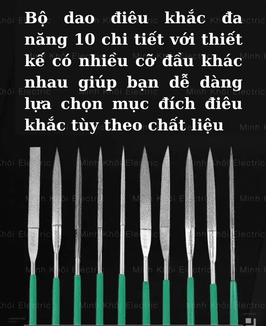 ✔️Sản phẩm bộ dũa kim cương 10 món gồm các đầu dũa dẹp, dũa bán nguyệt, dũa tròn, dũa tam giác, dũa vuông, dũa hình lưỡi dao…. hỗ trợ mọi sự sáng tạo bạn mong muốn.