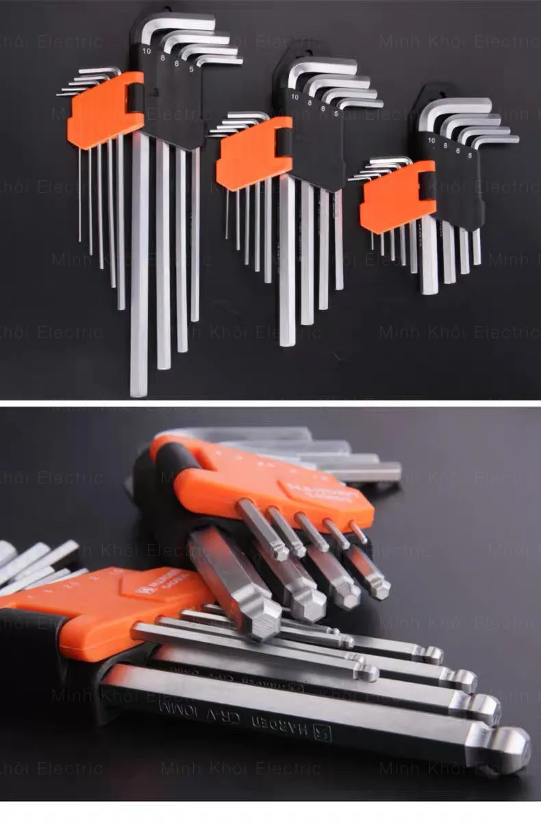 – Bộ bao gồm 9 món với các kích thước khác nhau: 1.5mm, 2mm, 2.5mm, 3mm, 4mm, 5mm, 6mm, 8mm, 10mm phù hợp với từng bulong, ốc vít. Giúp bạn có thể linh hoạt hơn trong công việc.
