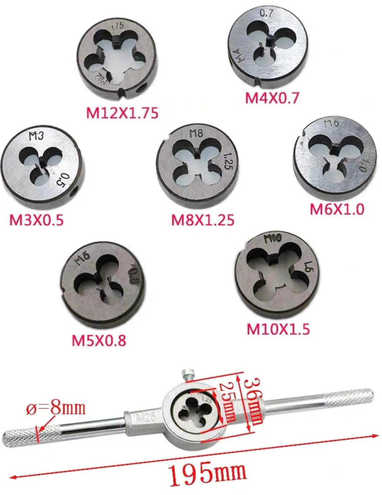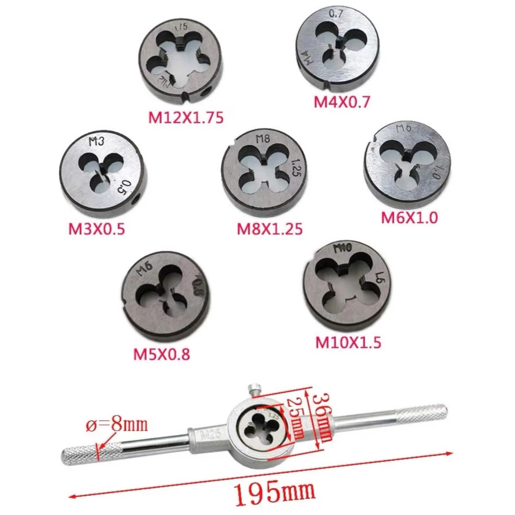 Bộ taro ren ngoài tay quay và 7 chi tiết tạo ren M3-M12 cao cấp đa năng