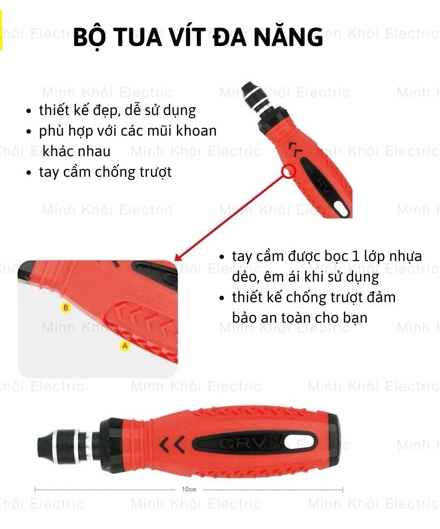 -Bộ sản phẩm gồm: 36 đầu vít + 1 kẹp đa năng + 1 tay cầm.