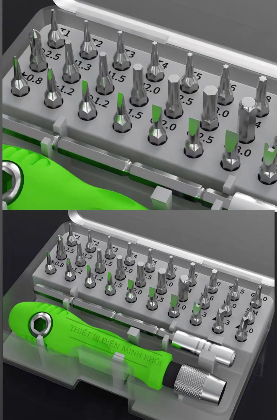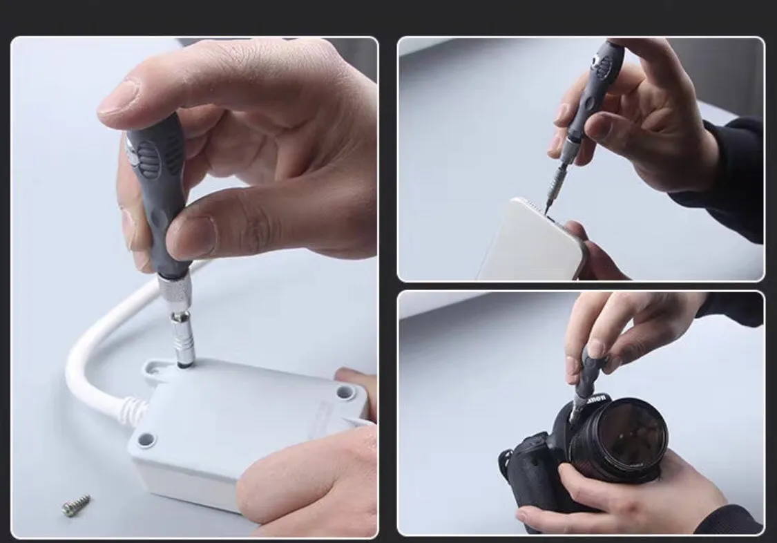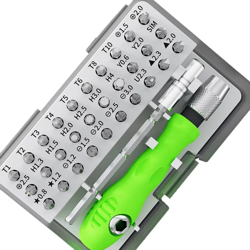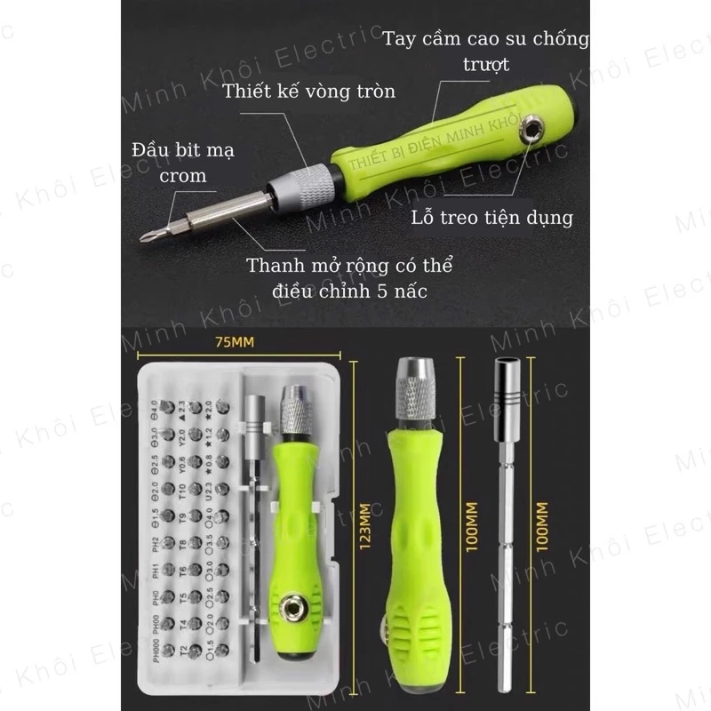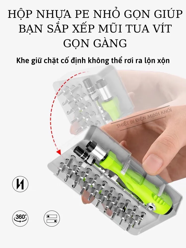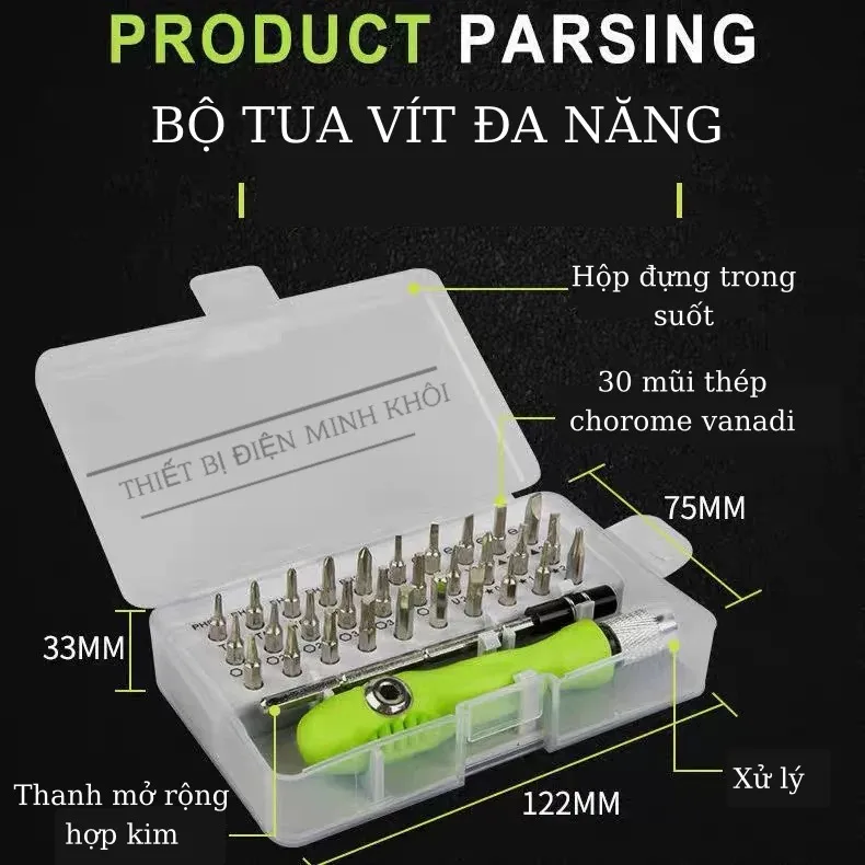 – Bộ tô vít đa năng 32 chi tiết là bộ dụng cụ cầm tay phù hợp cho việc sửa chữa các thiết bị trong gia đình, điện thoại, máy tính … Với 32 đầu vít khác nhau, đảm bảo dùng được với mọi loại linh kiện, thiết bị.