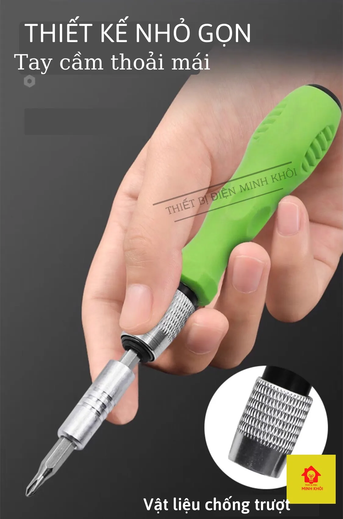 – Các đầu vít được gia công tỷ mỉ, và làm bằng chất liệu thép không gỉ nên có độ bền cao. Tay cầm được làm bằng nhựa, rất êm tay khi sử dụng, tránh trơn trượt và có 2 chỗ cắm đầu vít phù hợp mọi nhu cầu.