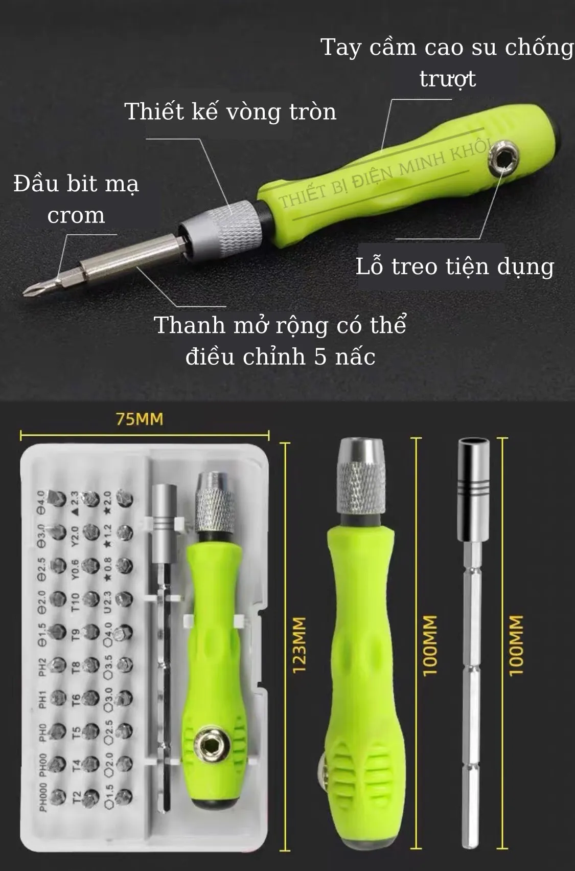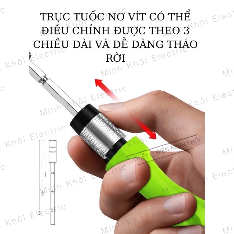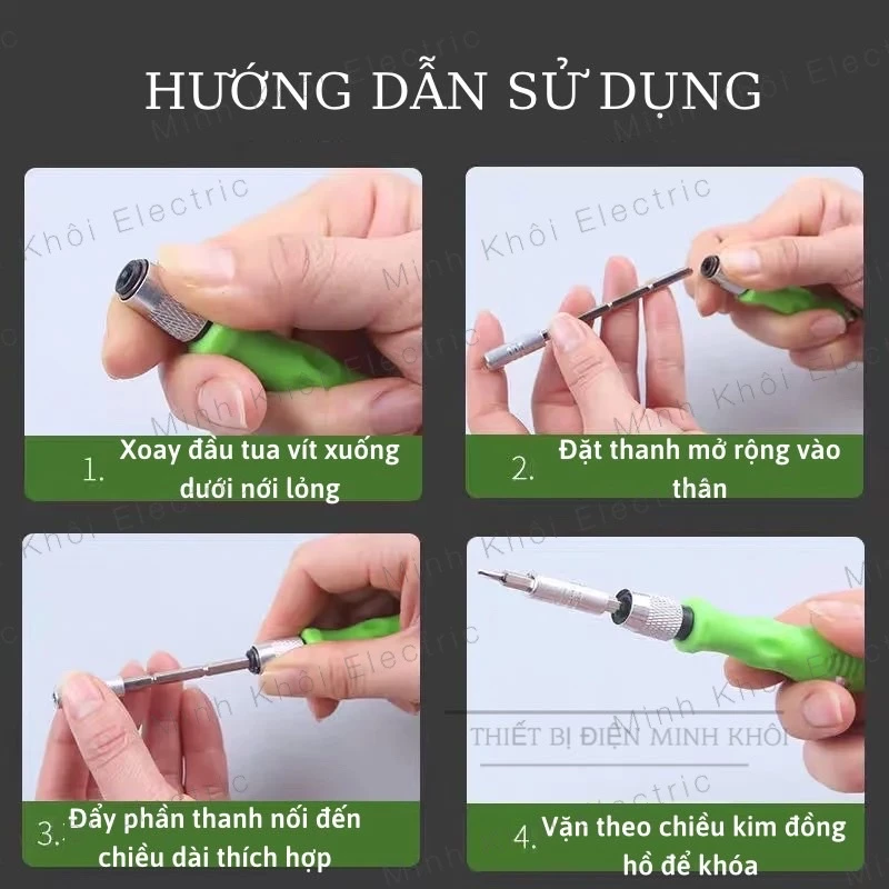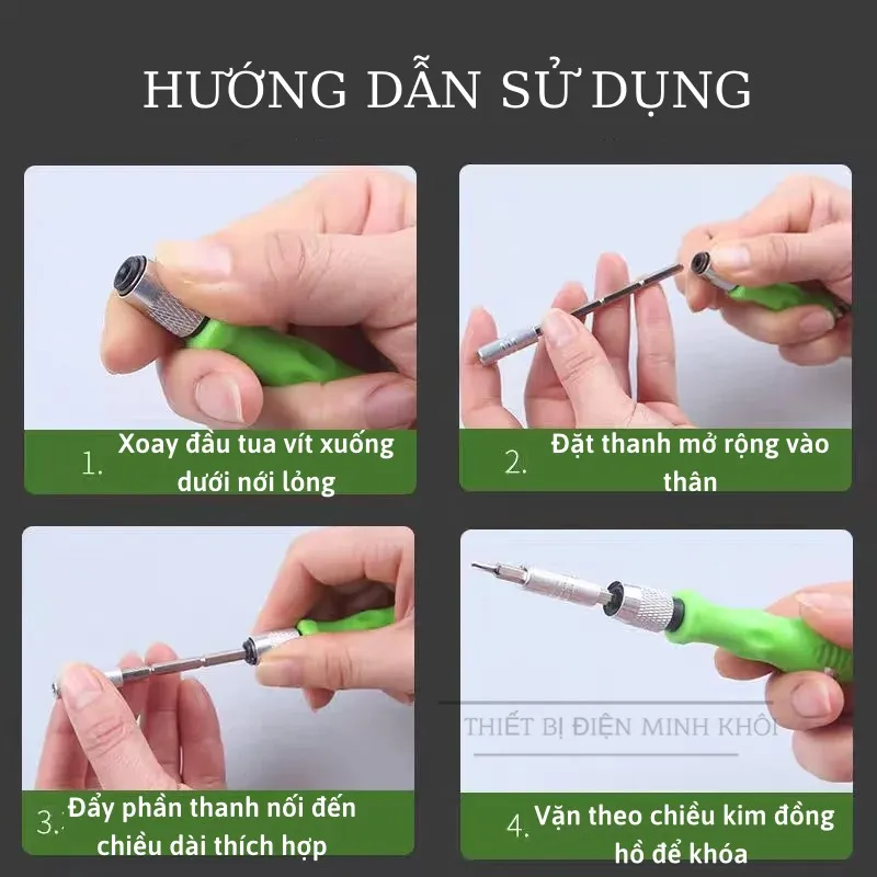 – Đặc biệt, đầu vít với 4 đốt khác nhau, mỗi đốt dài 3,5cm tạo ra tua vít với các chiều dài.