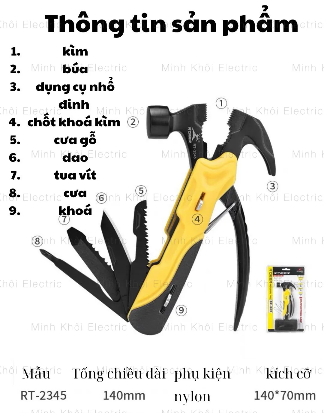 – Nhiều chức năng khác nhau: nhổ đinh, đóng đinh, dao mini, tuốc nơ vít nhỏ,..