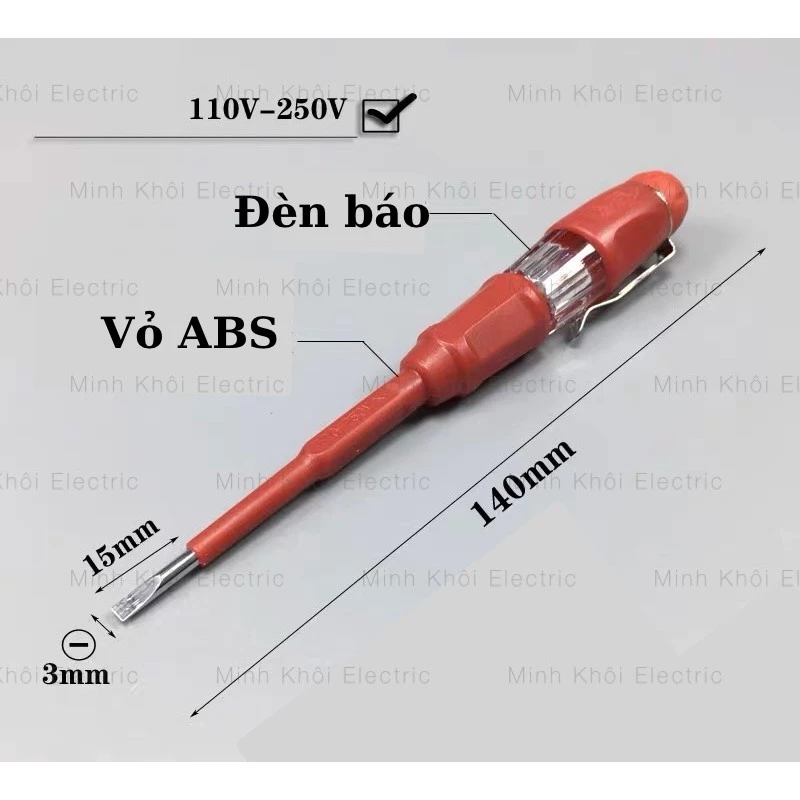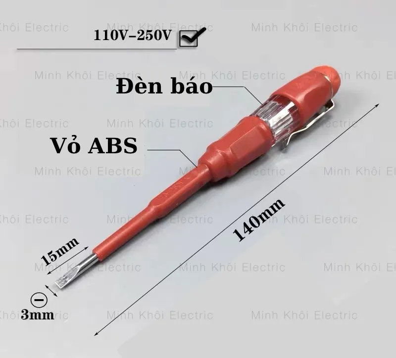– Bút thử điện có tác dụng hỗ trợ công việc kiểm tra dòng điện có phạm vi đo từ 100-500V.