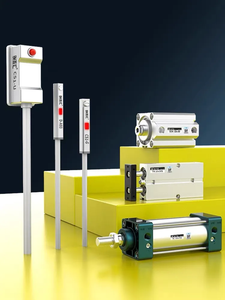 – Mỗi xi lanh thông thường được gắn hai cảm biến, để báo hai hành trình ra-vào của xi lanh, nhờ đó mà hệ thống có thể hoạt động tự động thông qua hai tín hiệu này.