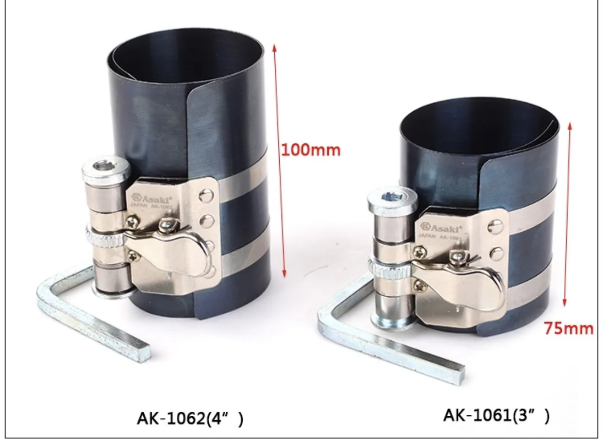 – Chức năng của dụng cụ này là nén vòng bạc đã được lắp sẵn vào đầu piston và sau đó mới có thể lắp piston vào buồng đốt