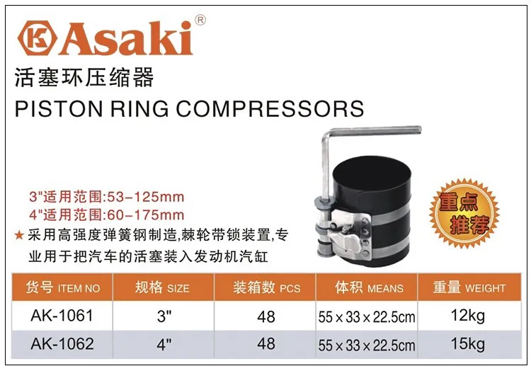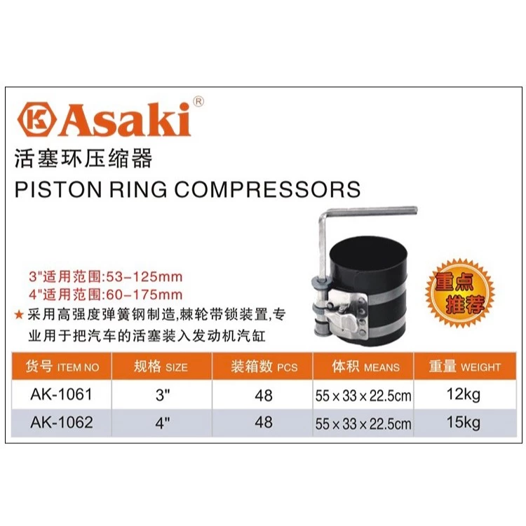 Tính năng, đặc điểm của vòng ép bạc piston Asaki AK-1062, AK-1061
