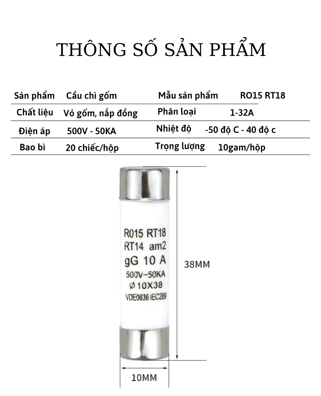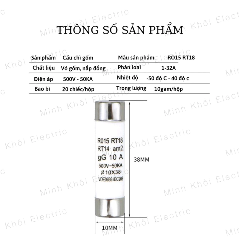 Chất liệu: Vỏ bọc sứ cách điện, 2 đầu làm từ hợp kim chống gỉ