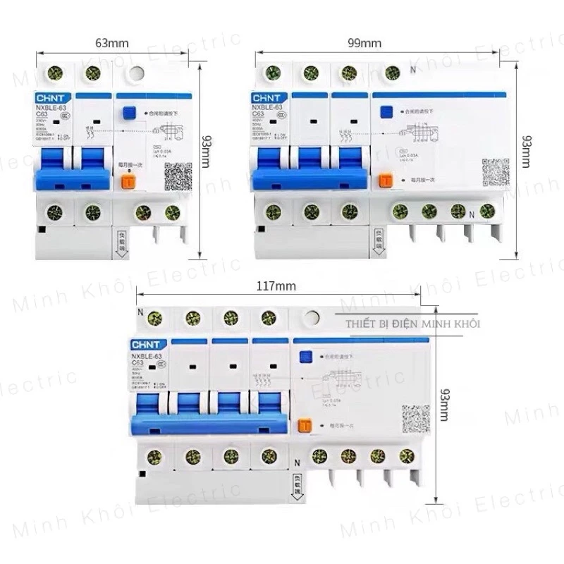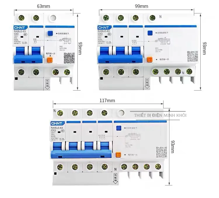 – Dải dòng: 10A,16A, 20A, 25A, 32A, 50A, 63A