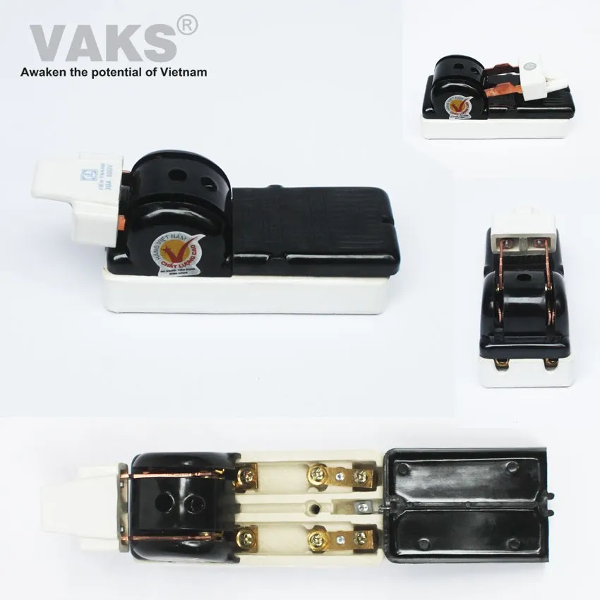 Cấu tạo: đế sứ, tay cầm sứ, ốp nhựa chống cháy, đồng nguyên chất.