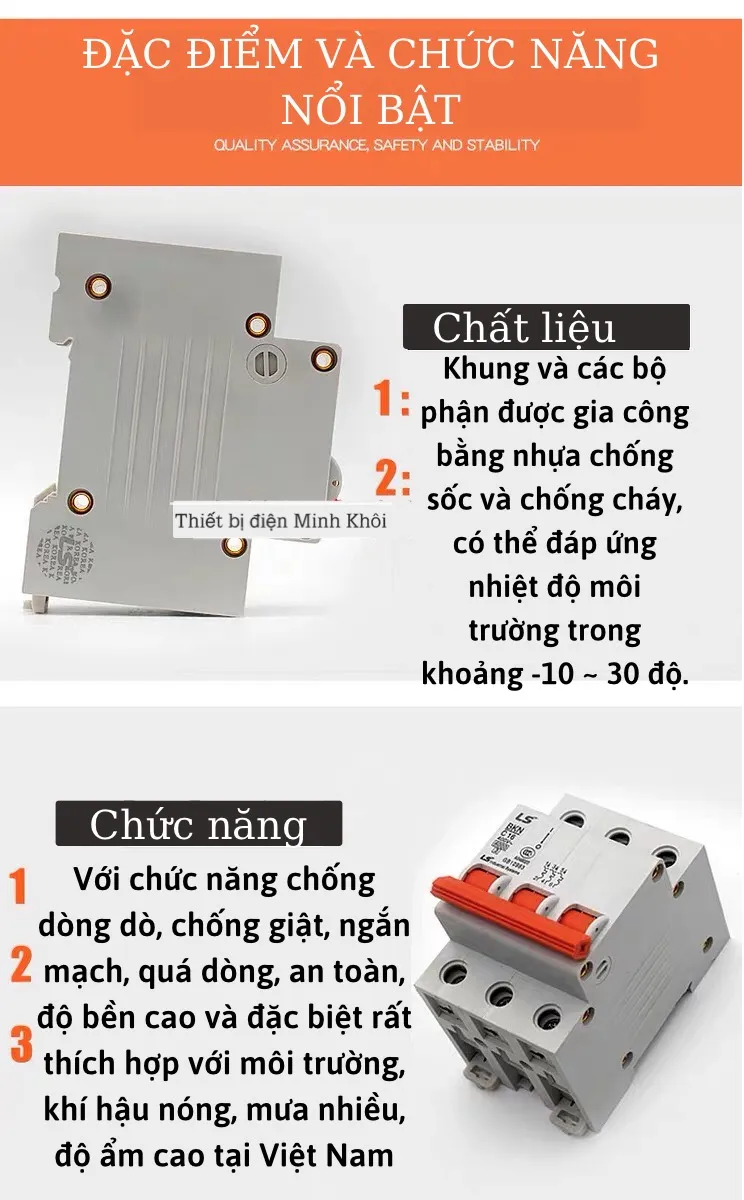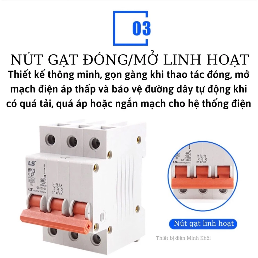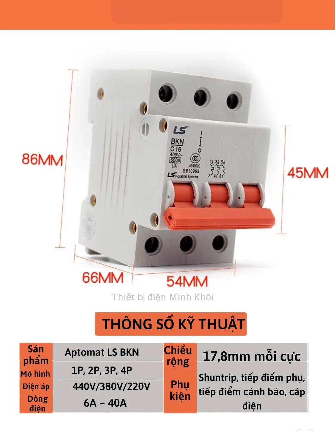 Công suất định mức: 6, 10, 16, 20 , 25, 32A