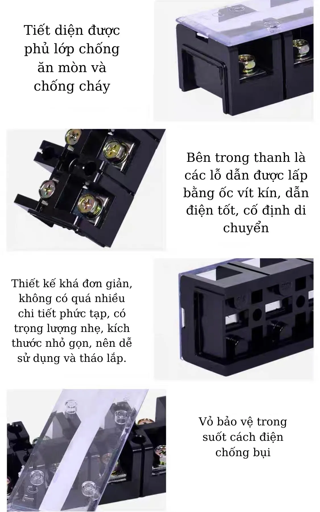 Cầu đấu điện, cầu đấu dây điện, domino, cầu nối dây điện, cầu đấu dây, cầu đấu terminal block 3 Pha 4 cực