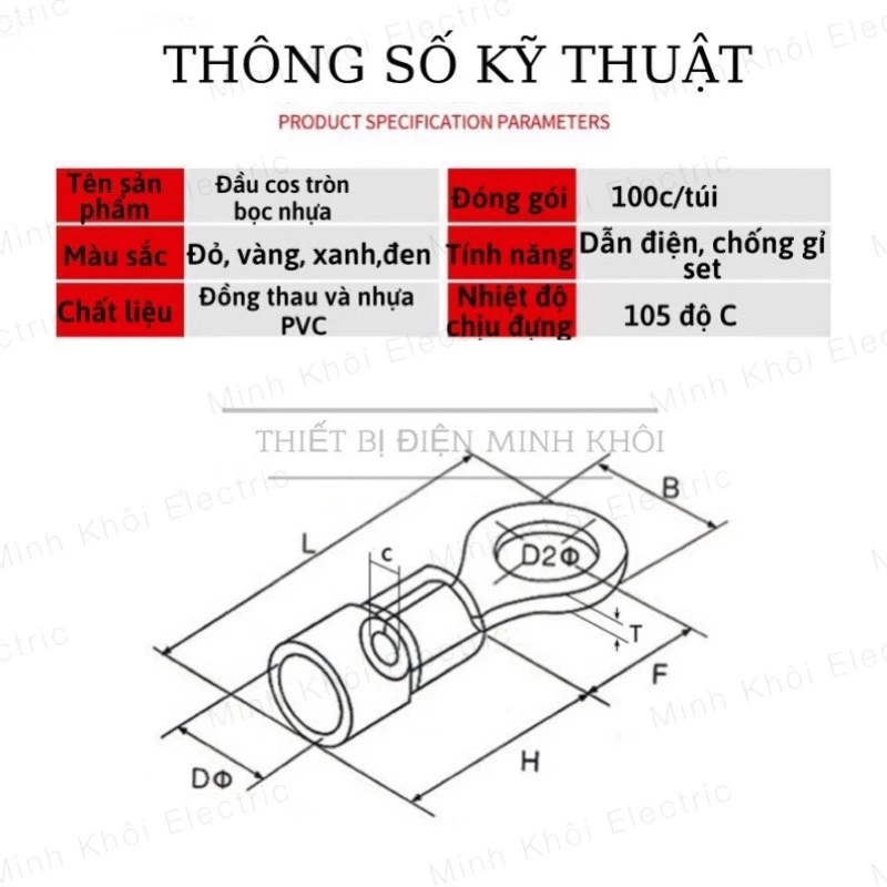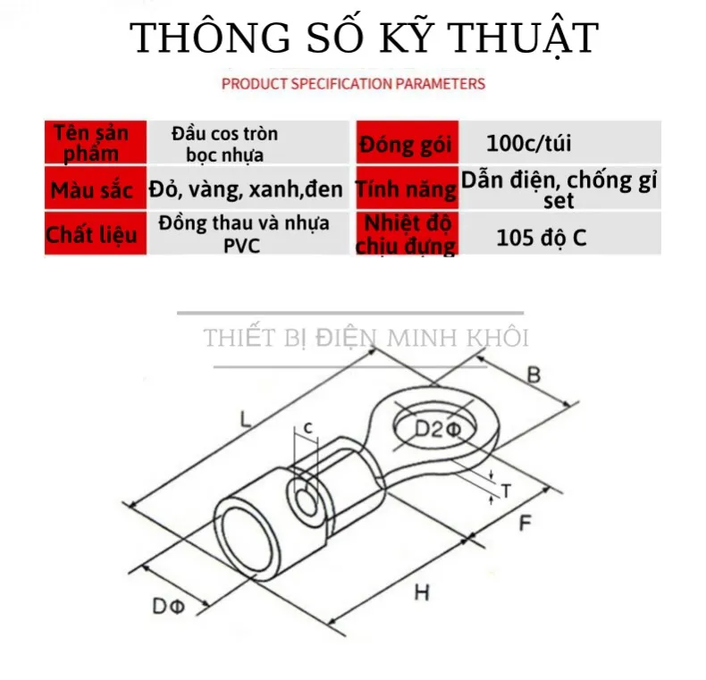 – RV2-5 : lỗ bắt ốc 5MM, Phù hợp với tiết diện dây 1.5-2.5MM