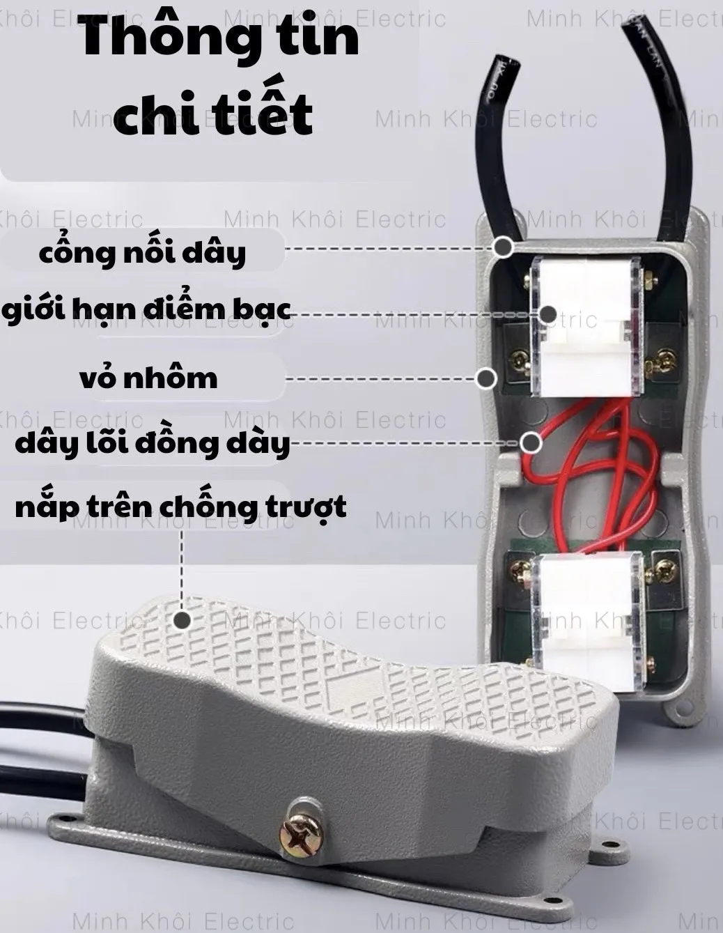 Công tắc chân lt4 với kết cấu chống trượt trên bàn đạp, Có phần che chắn phí trên chân không dễ bị trượt khi làm việc