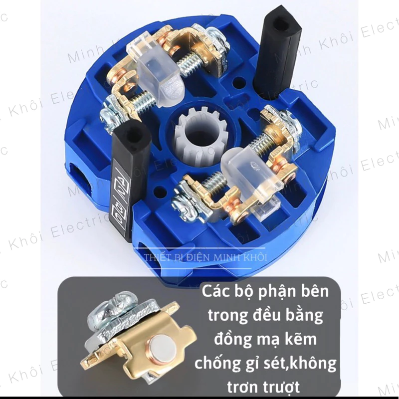 Các bộ phận bằng đồng mạ kẽm dày dặn, dẫn điện cực tốt, không dễ trượt.