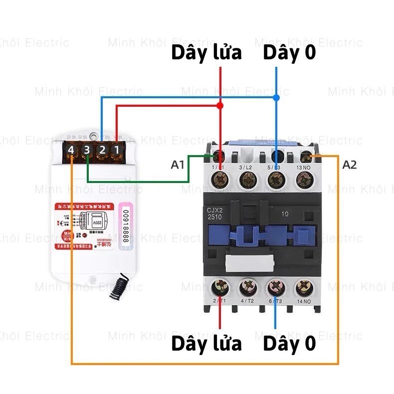 – Đầu tiên bạn cấp nguồn cho bộ thu, nguồn 220V đấu vào chân 1,2 bên trái
