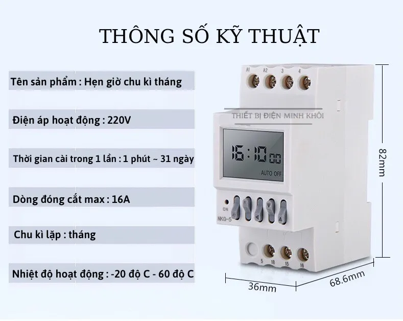 Thông số kĩ thuật Hẹn giờ chu kỳ tháng NKG-5