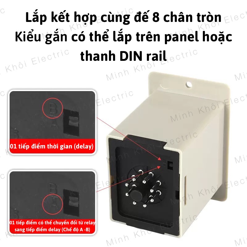 – 01 tiếp điểm có thể chuyển đổi từ relay sang tiếp điểm delay (Chế độ A -B)