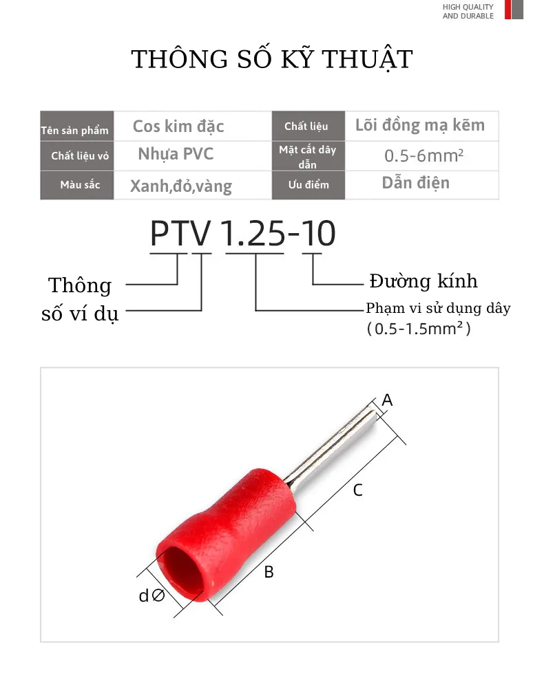 3- Loại 5-12: Phù hợp cho dây điện từ 4.0-6.0MM chiều dài kim tiếp xúc là 12MM