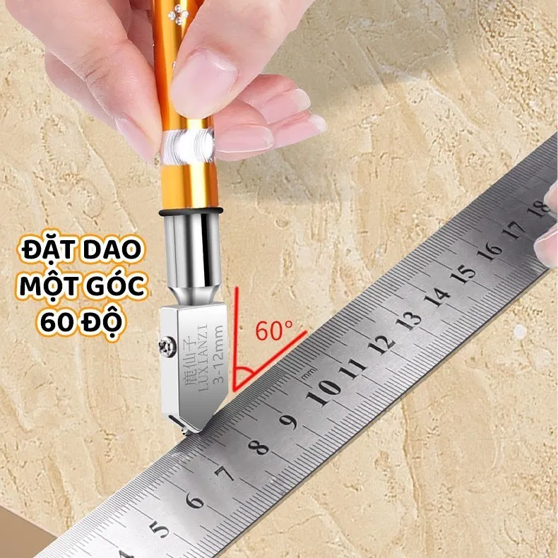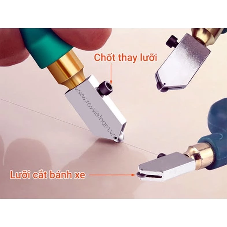 Đầu dao sử dụng hợp kim YD 05 Vonfram cacbua, có thể xoay 380°, với loại đầu dao này giúp cho vết cắt trở lên mịn và không gây ra tình trạng vỡ kiếng. Cán dao sử dụng chất liệu polycarbonate có độ bền cao gấp 300 lần giúp người sử dụng dễ dàng thao tác hơn và giúp tay cầm vững chắc hơn.