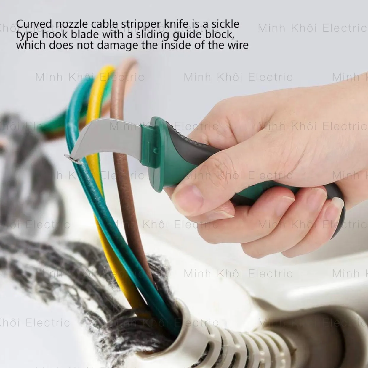 1. Lưỡi tuốt cáp có vòi cong là một lưỡi móc kiểu lưỡi liềm với khối dẫn hướng trượt, không làm hỏng bên trong cáp