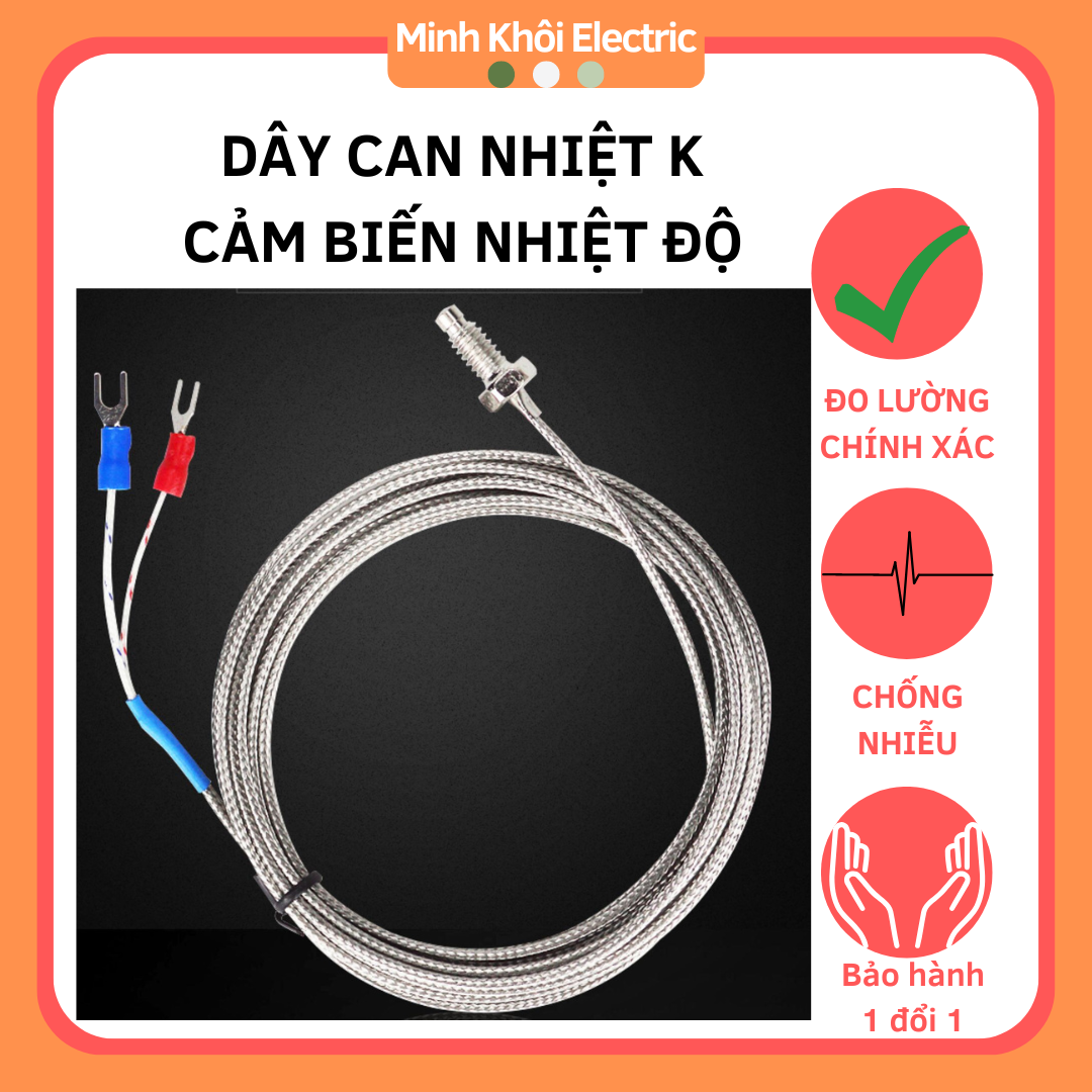 Dây Can Nhiệt K, cảm biến nhiệt độ,đầu dò cảm biến, đầu dò can K – Dài 5m