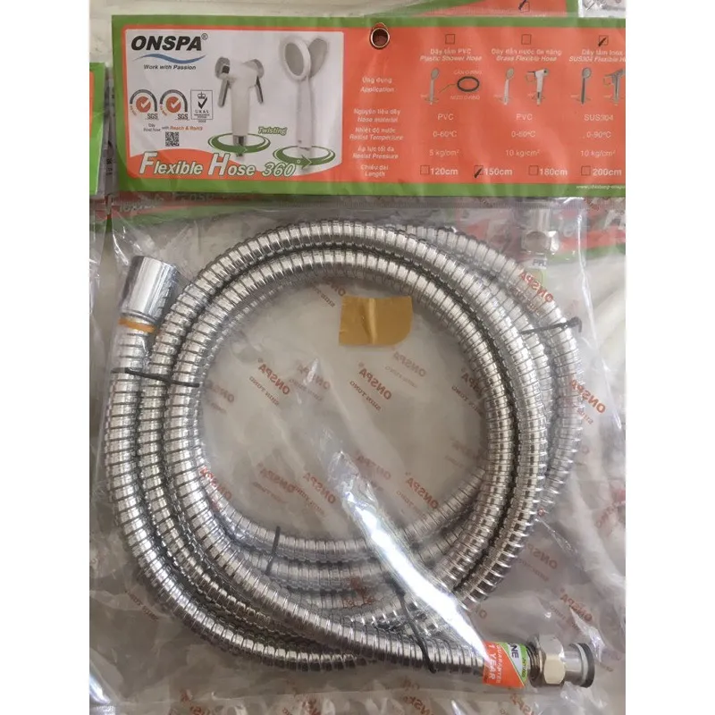 – Dây cấp nước sọc cao cấp inox 304 Onspa chất lượng tốt, chịu được áp lực cao, bền, dẻo và không bị rỉ sét.