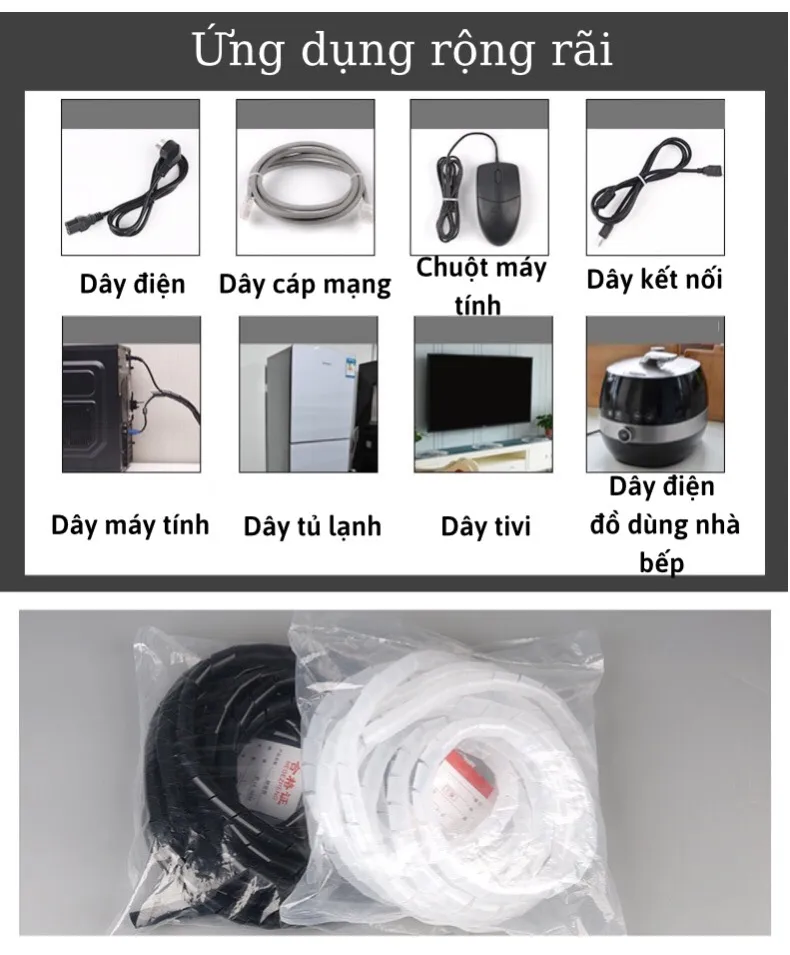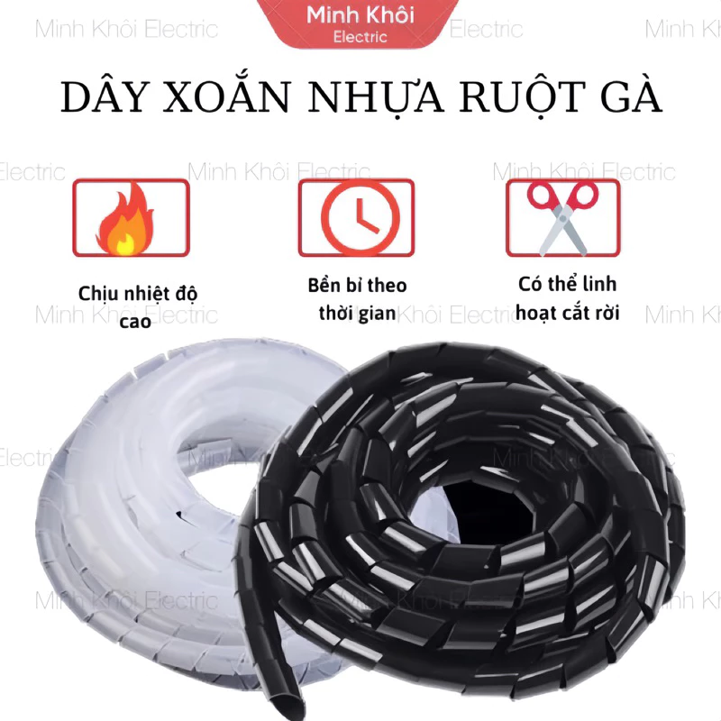 Dây xoắn ruột gà dùng để luồn dây điện, bảo vệ dây dẫn tránh tác động từ các vật va chạm sắc nhọn và sự cắn phá của một số động vật. Dây xoắn ruột gà được sử dụng ở những nơi ống luồn cứng không thể uốn lắp được. khu vực trong nhà và ngoài trời.