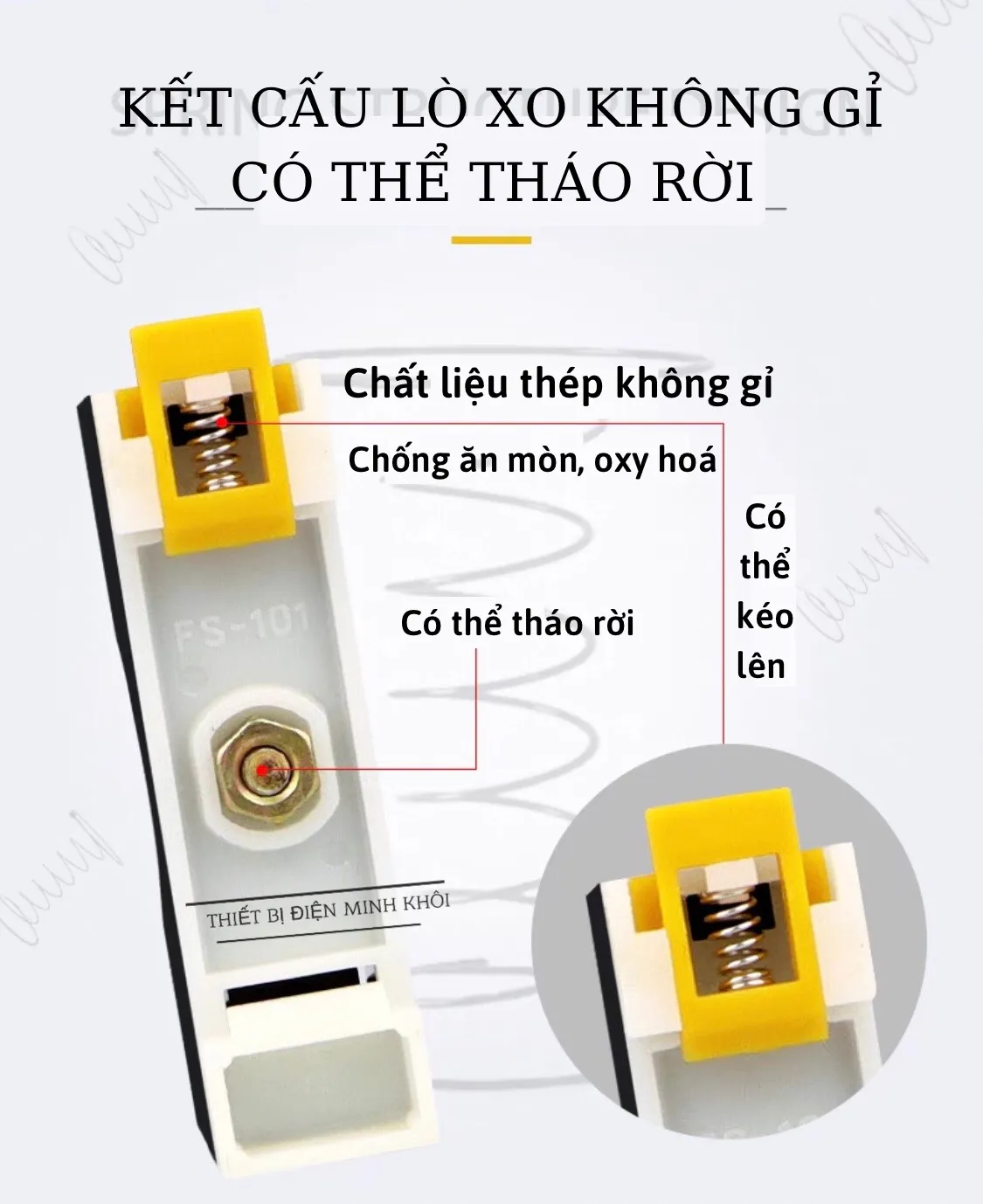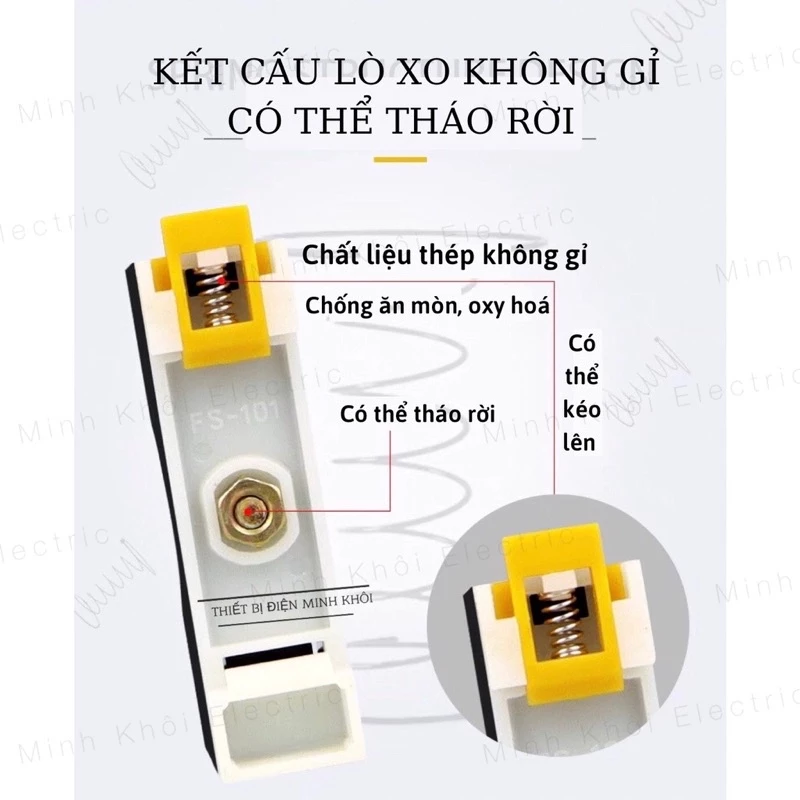 Bộ cầu chì kính FS-101 có đèn thích hợp lắp đặt trên thanh ray nhôm 35mm, giúp việc lắp đặt thuận tiện hơn, dễ dàng hơn. Khi cầu chì đứt, đèn sẽ sáng lên trong thời gian xảy ra sự cố của mạch bảo vệ bảo vệ cho đến khi được thay thế.