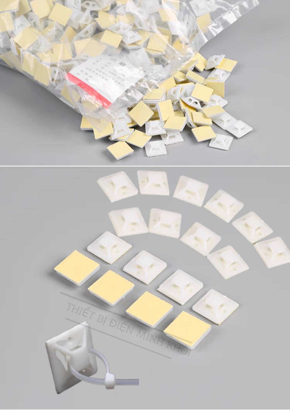 Đế Dán Dây Rút Cố Định Dây Điện, miếng dán giữ dây điện, gối đỡ dây điện,đế dán cố định dây rút – túi 50c – 40x40mm