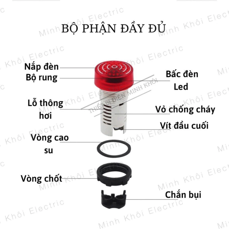 Đèn báo nguồn có còi báo tiện lợi, sử dụng được trong nhiều thiết bị