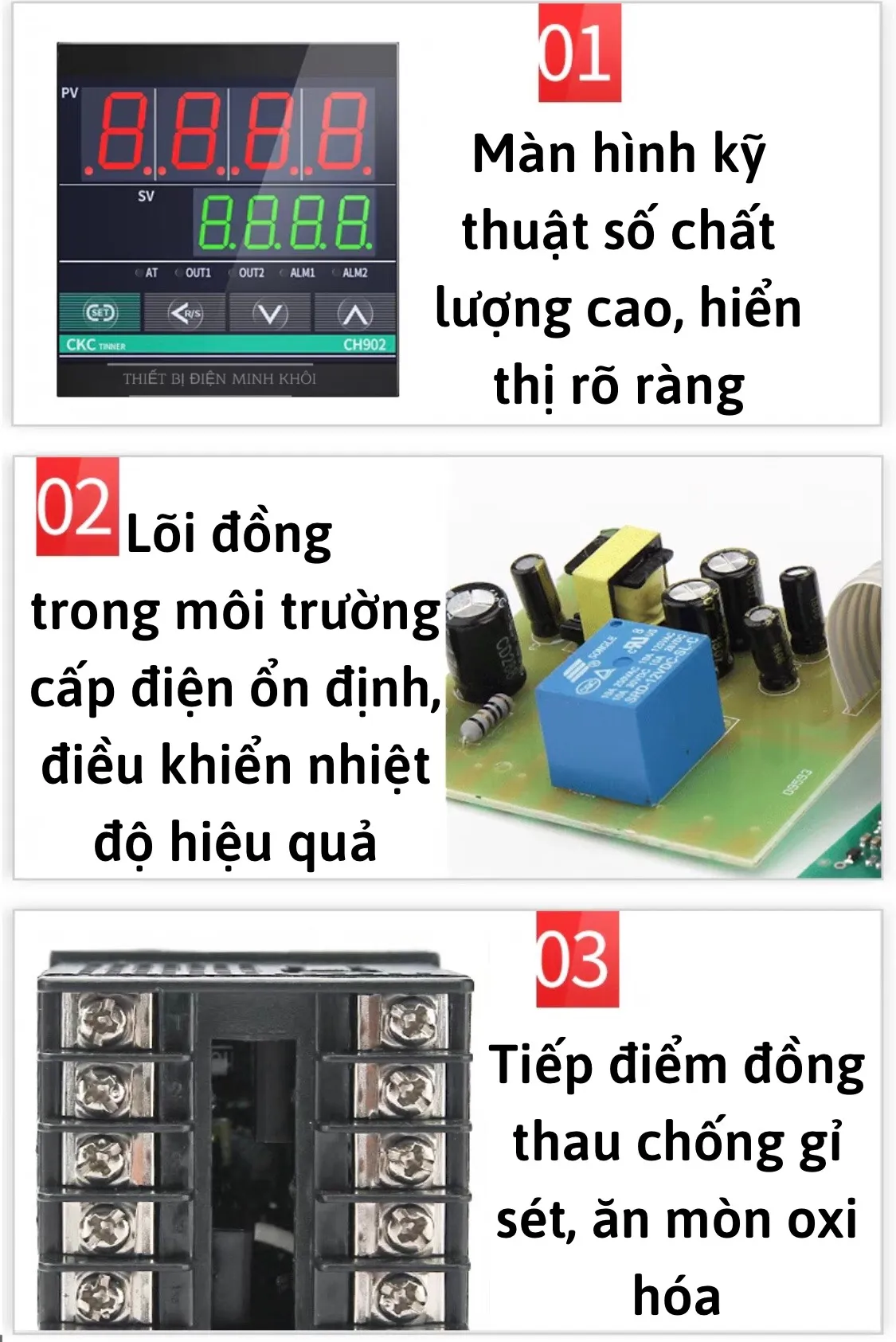 – Hiện thị giá trị nhiệt độ với độ chính xác cao.