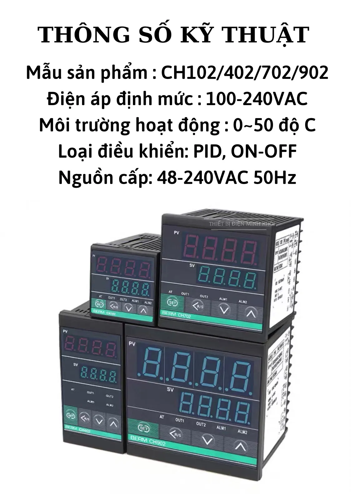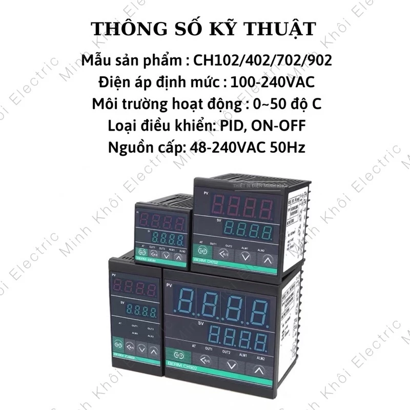 2. Thông số kỹ thuật Bộ điều khiển Nhiệt độ CH102, CH402, CH702, CH902:
