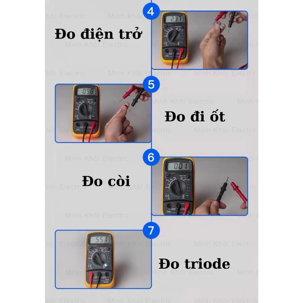 ▶️Khoảng đo điện trở: 200Ω – 2MΩ (Sai số: +- 2.5%)