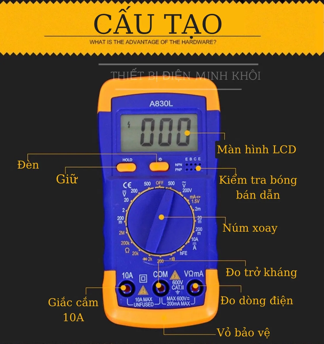 Kiểm tra nối mạch: khi điện trở giữa 2 đầu đo gần bằng 0 (mạch thông) thì máy sẽ kêu “bíp”.