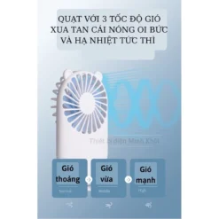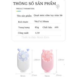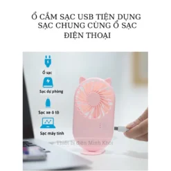 – Quạt Mini cầm tay sạc điện được thiết kế thông minh với 1 chân đế tiện dụng, có thể sử dụng ở bất cứ nơi đâu, giúp bạn xua tan nắng nóng mùa hè. – Quạt chạy êm với lượng gió vừa phải, thích hợp sử dụng để bàn cho dân văn phòng, sinh viên.