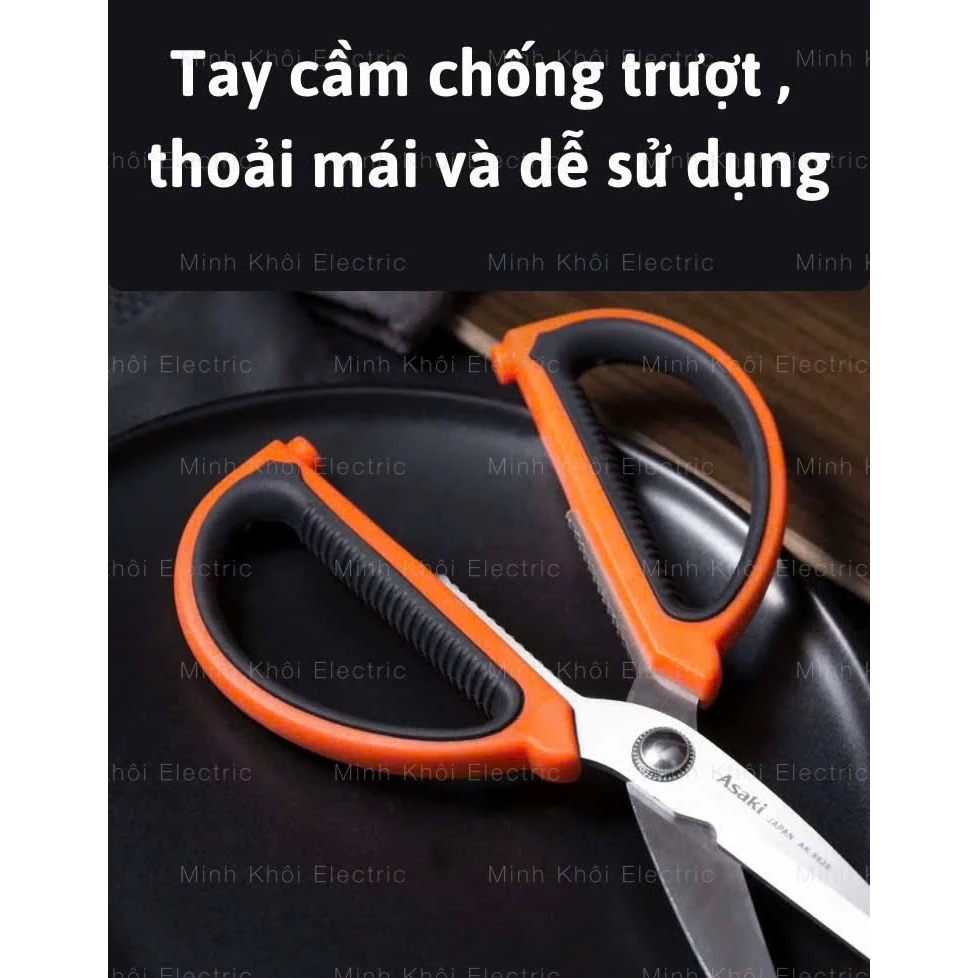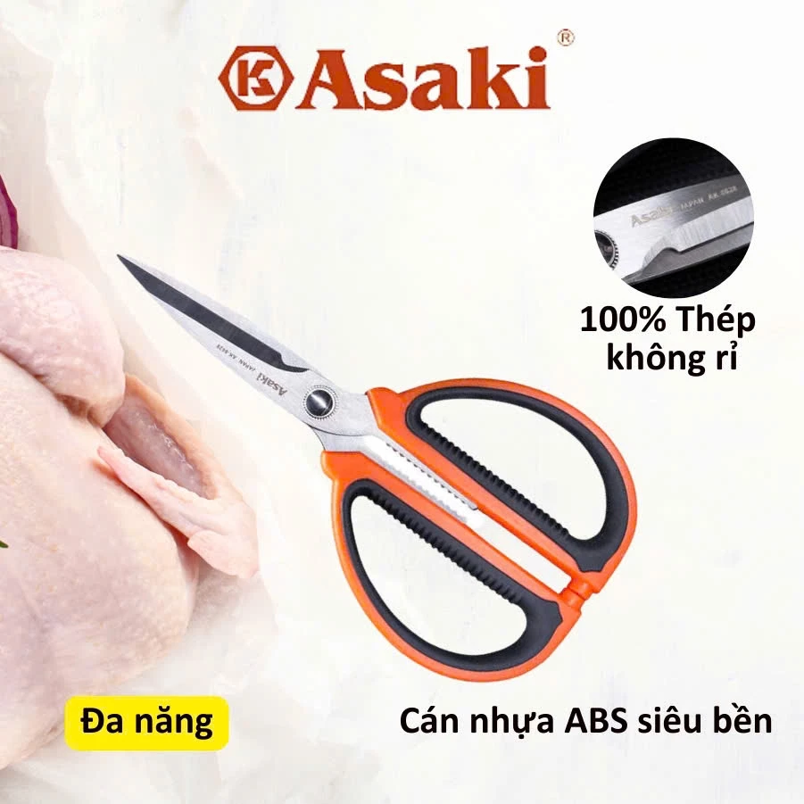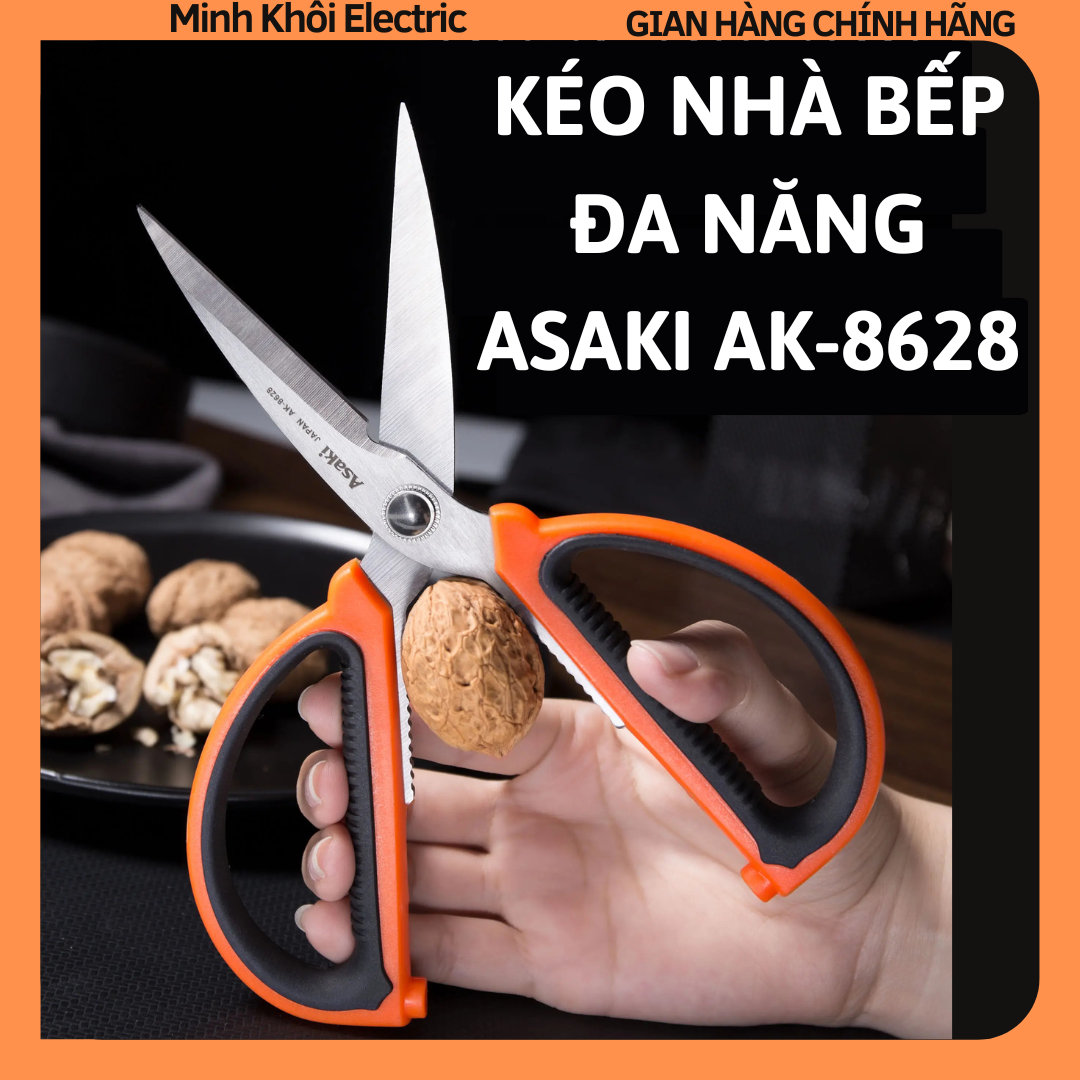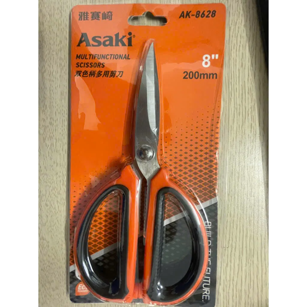 KÉO NHÀ BẾP ĐA NĂNG 200MM ASAKI AK-8628, KÉO CẮT SIÊU SẮC BÉN GIA DỤNG THÉP KHÔNG GỈ, CÁN CẦM BỌC NHỰA ABS CHỐNG TRƯỢT