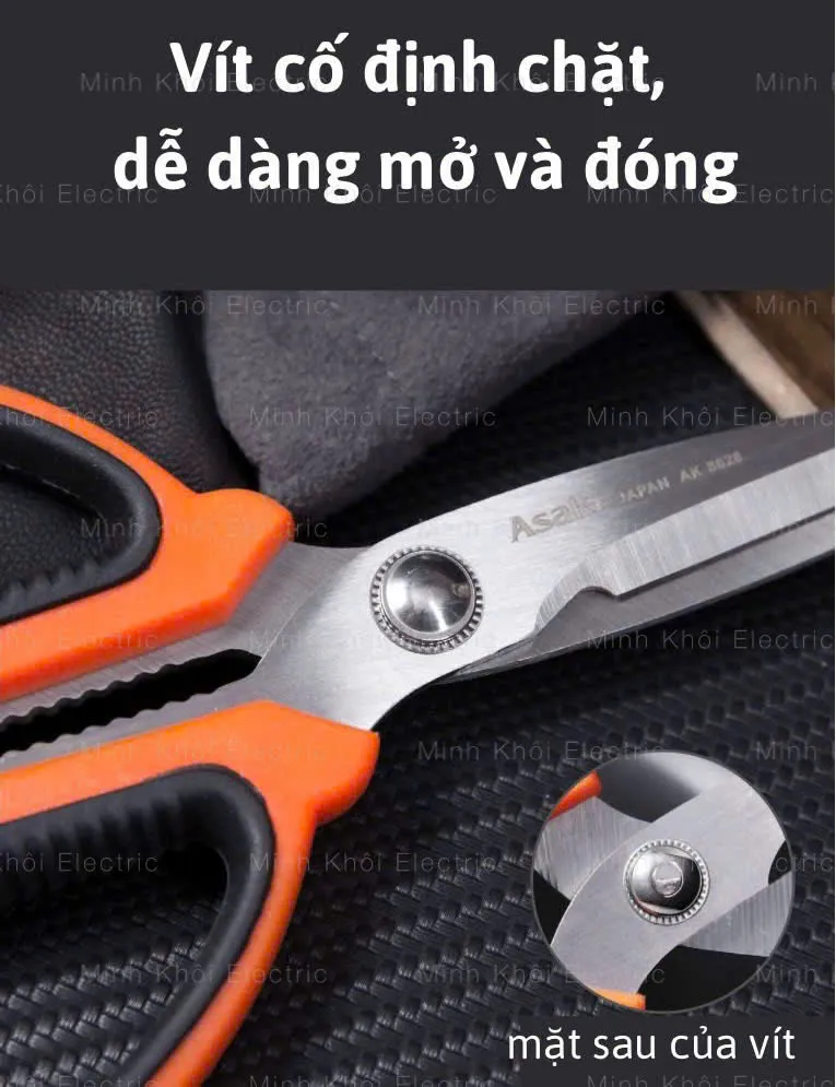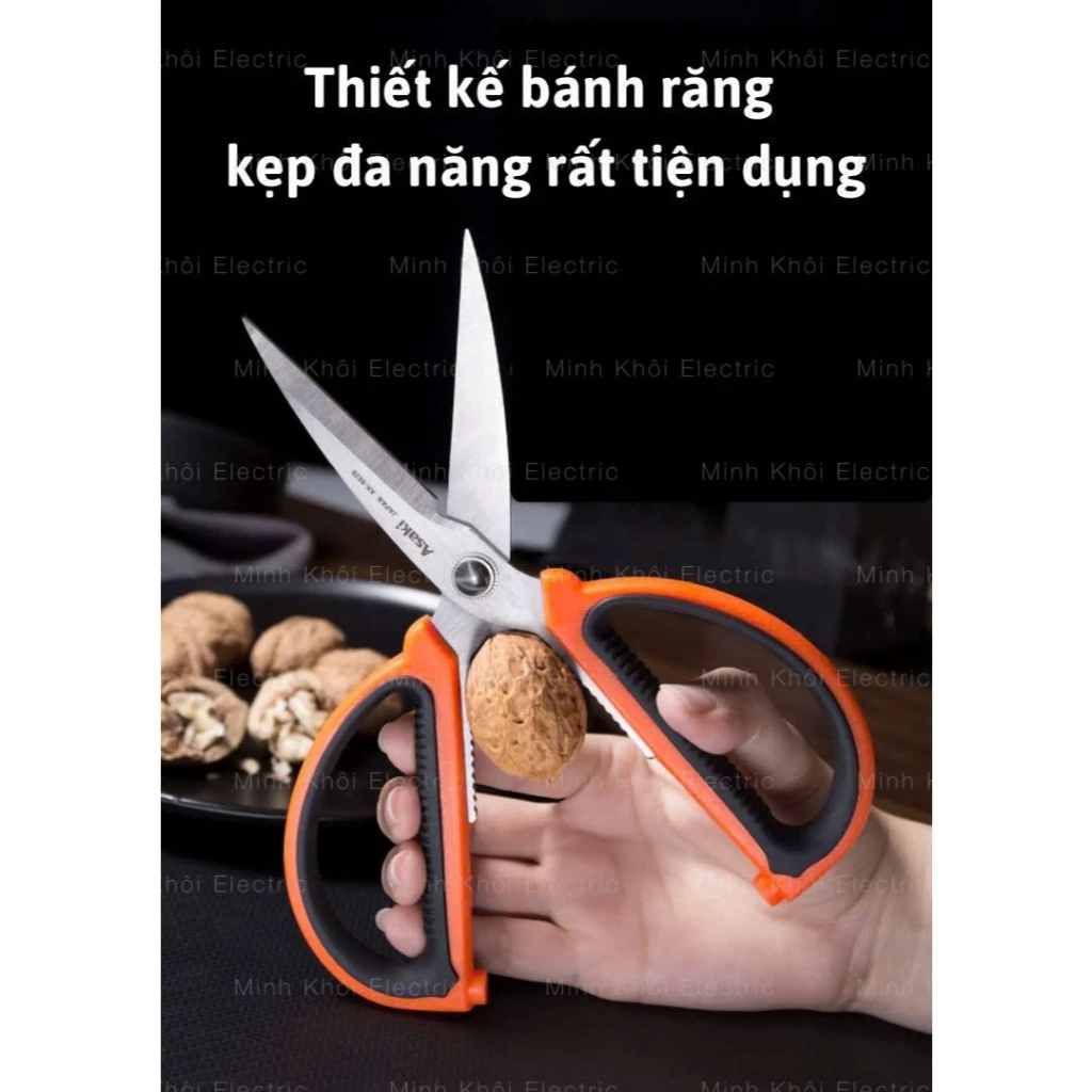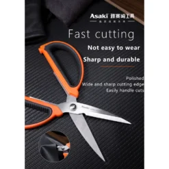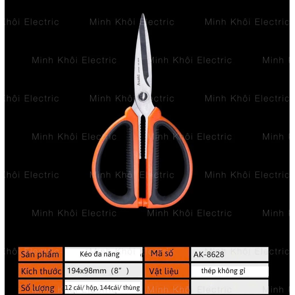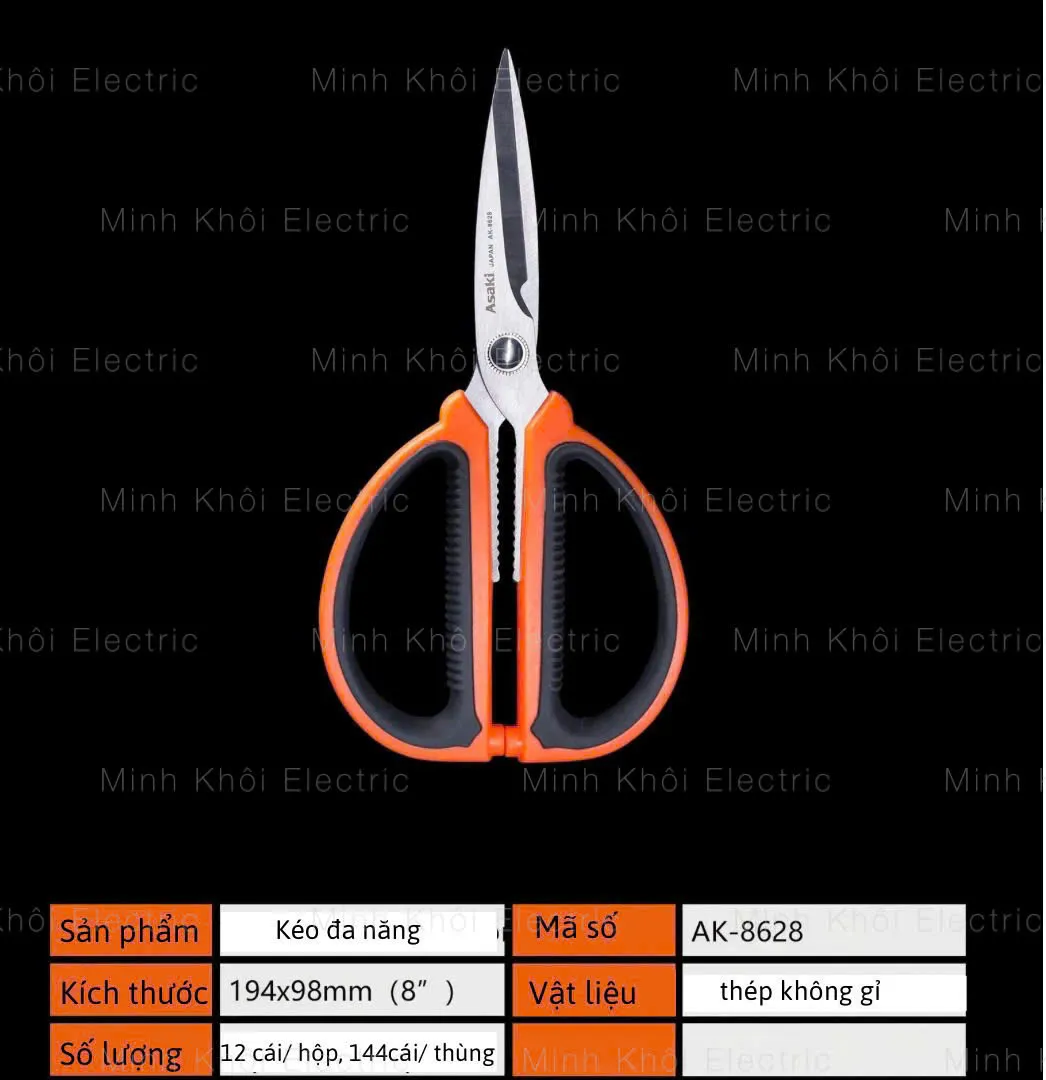 KÉO NHÀ BẾP ĐA NĂNG 200MM ASAKI AK-8628, KÉO CẮT SIÊU SẮC BÉN GIA DỤNG THÉP KHÔNG GỈ, CÁN CẦM BỌC NHỰA ABS CHỐNG TRƯỢT