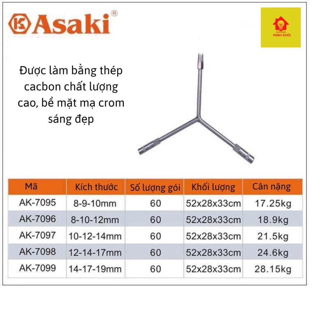 Điếu chữ Y 10-12-14mm Asaki là một sản phẩm nổi bật của thương hiệu Asaki chuyên cung cấp các dụng cụ cầm tay, dụng cụ điện, dụng cụ sửa chữa ô tô, đo lường. Các sản phẩm được sử dụng rộng rãi trong các ngành công nghiệp trường xây dựng, giao thông, nội ngoại thất, Sản phẩm còn được sử dụng cho các công ty, hộ gia đình cũng nhiều lĩnh vực khác.