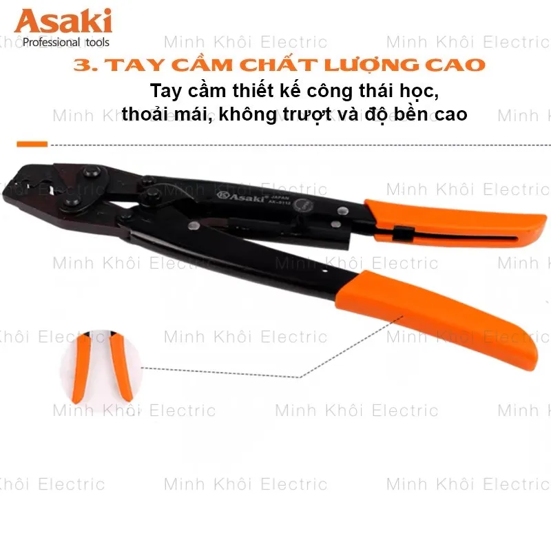 Nếu bạn là một thợ điện, thợ sửa xe chuyên nghiệp thì chắc hẳn bạn không còn xa lạ với các công việc bấm cos khi đấu nối đường dây, mạch điện. Trên thị trường hiện nay có rất nhiều loại kìm để hỗ trợ các công việc này nhưng không phải sản phẩm nào cũng có chất lượng đảm bảo. DTS tự tin giới thiệu tới người dùng Kìm ép cos tròn dạng cộng lực hãng Asaki. Đây là một trong những loại kềm có khả năng bấm cos tròn với 5 mã kìm phù hợp với nhiều mục đích sử dụng. Sản phẩm không chỉ phù hợp với những thợ điện chuyên nghiệp mà còn thích hợp để mọi người sử dụng trong cuộc sống hàng ngày.