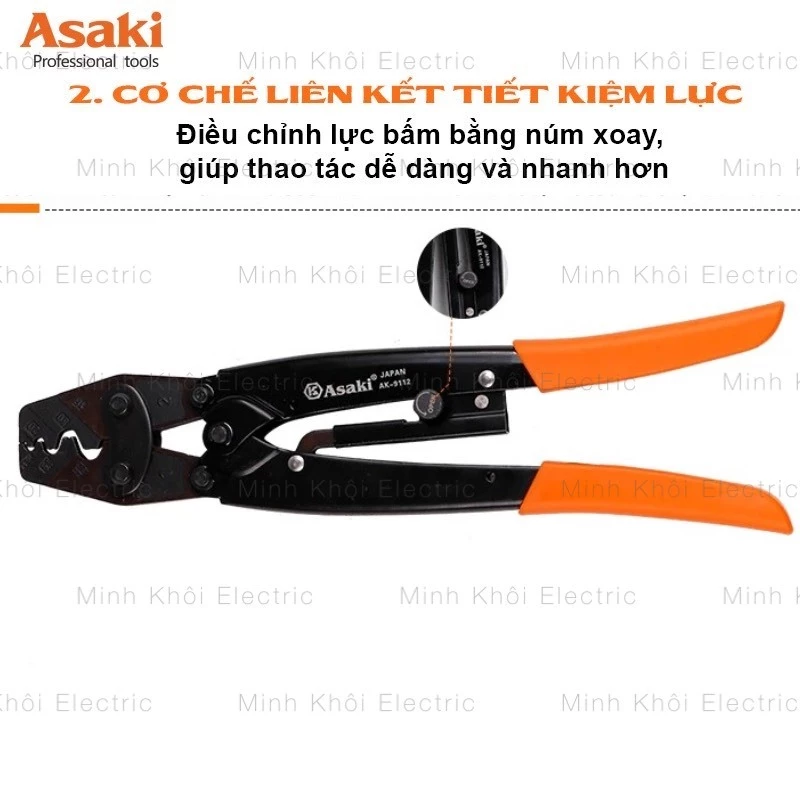KÌM BẤM COS TRỢ LỰC HÃNG ASAKI JAPAN, KÌM BẤM ĐẦU COS TRÒN CỘNG LỰC SIÊU KHOẺ, SIÊU BỀN, ĐỘ CHÍNH XÁC CAO (KỀM BẤM CỐT)