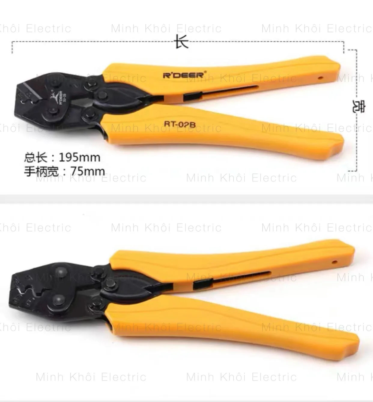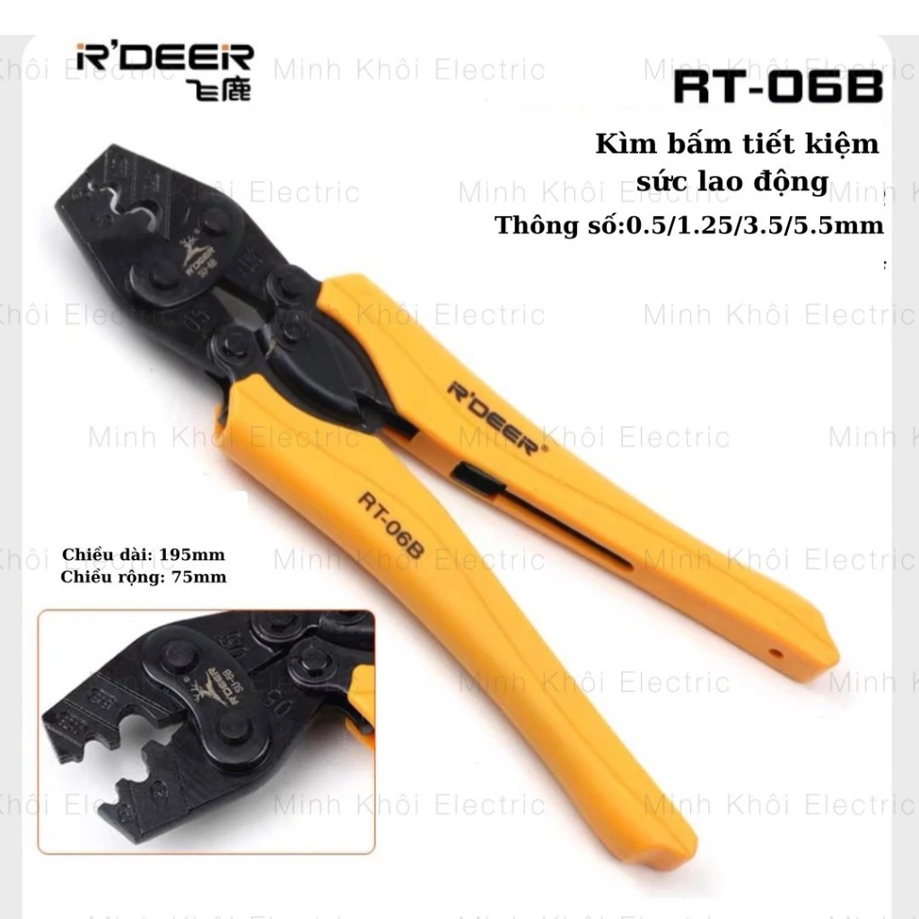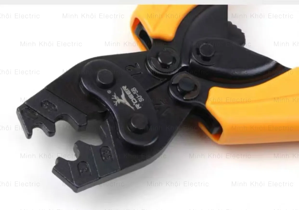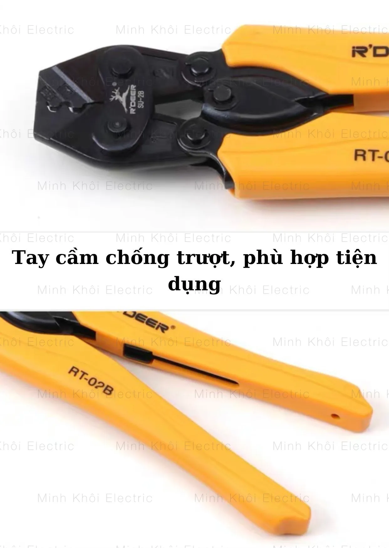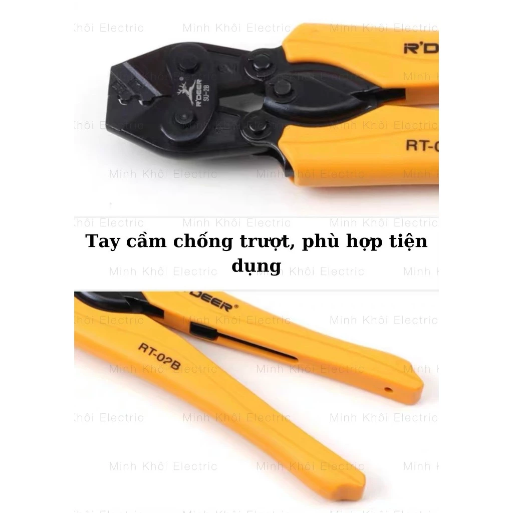 Kìm bấm cos R’Deer SU-06B 0.5-5.5mm chuyên dùng để bấm các đầu mạng các loại cáp viễn thông như cáp điện thoại, cáp mạng LAN. Bấm/ép các đầu cos có thân tròn, bằng kim loại, để kết nối đầu cos đó với dây dẫn điện một cách dễ dàng. Kìm chuyên bấm cos 0.5-5.5mm2 với thiết kế nhỏ gọn, dễ dàng mang đi thích hợp với người thợ.