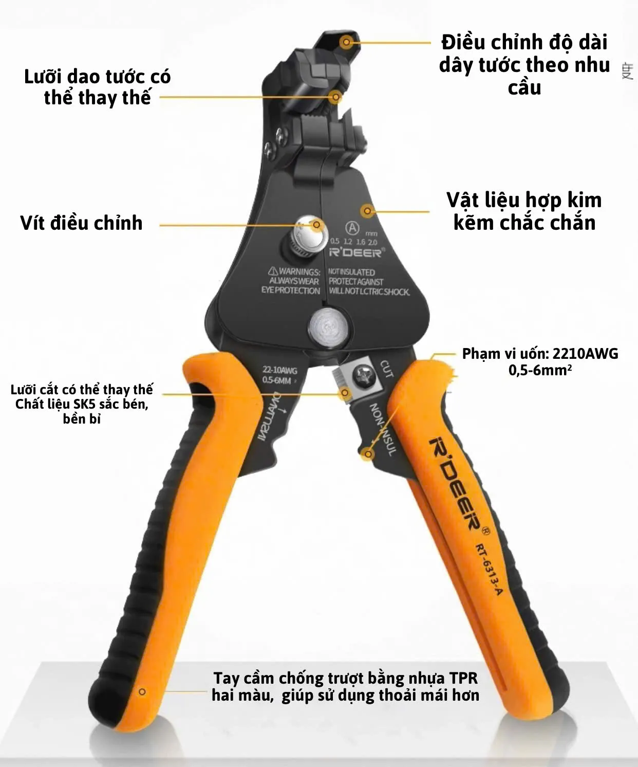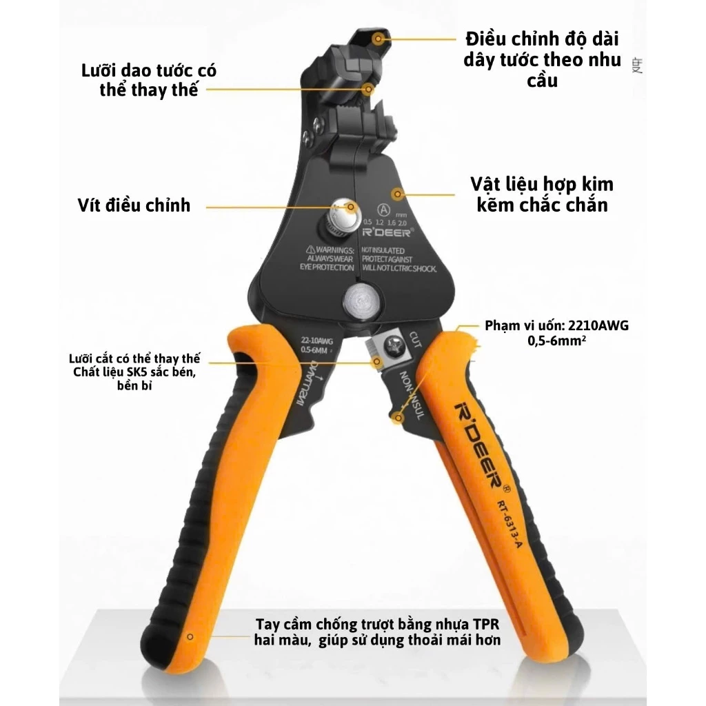 Kìm cắt cáp kềm tuốt dây đa năng 2 trong 1 R’deer từ 0.9mm-5,5mm