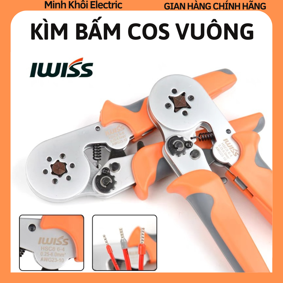 Kìm bấm cos vuông IWISS, kìm bấm cos lục giác, kìm uốn dây điện,kìm bấm cos pin, kìm bấm cos kim – Kìm bấm cos vuông